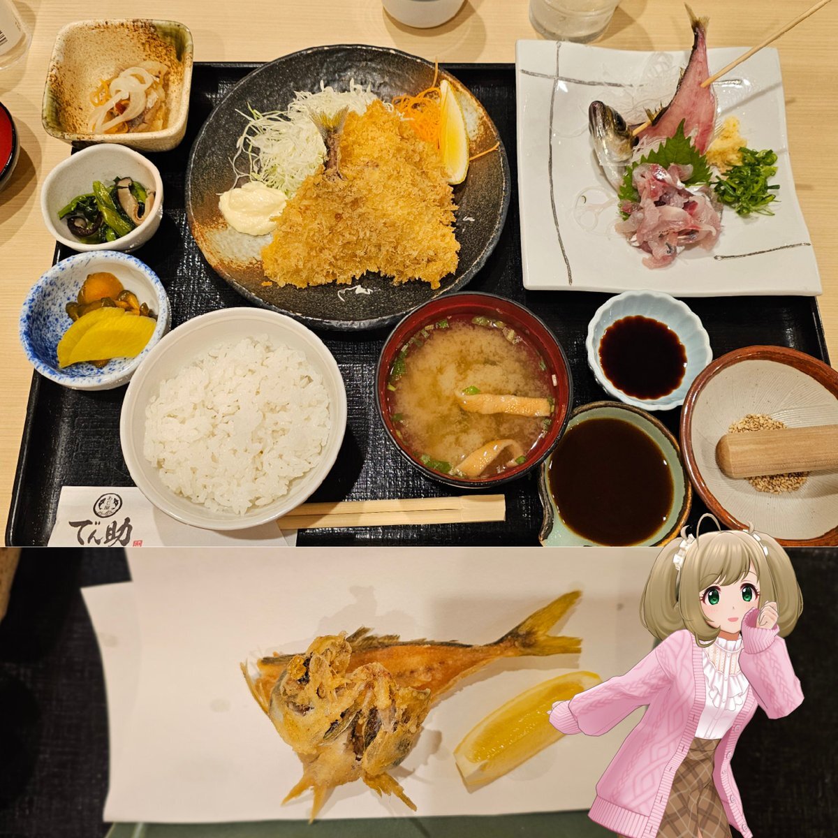 日帰り小田原〆 ミナカ小田原内の「あじ屋でん助」で夜ご飯🍴 フライとお刺身のあじくらべ定食 最後に骨せんも☆ 衣も鯵もふわっとしてて美味しかった☆ 帰りはロマンスカー後展望席(本物)でw 帰りも🍷呑み呑み小一時間 楽しかった~ʚ♡ɞ #デレスポAR #佐藤心 #アイマスP食いしん坊隊 #はぁとのごはん pic.x.com/oDkhMXMvcJ