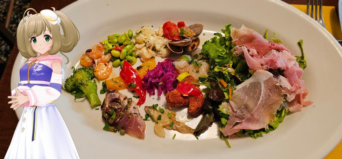 日曜ランチ🍴 銀座GEMS4階のヴェネツィア料理「osteria da Ada(オステリア ダ アダ)」 🛗が開くとすぐ立ち飲みバル、奥にレストランのバーカロスタイルでヴェネツィア風を体感☆ 雰囲気も味も◎ ちな服はARIAのウンディーネっぽいつもり😌 #アイマスP食いしん坊隊 #デレスポAR #佐藤心 #はぁとのごはん pic.x.com/xVlY2qezqH