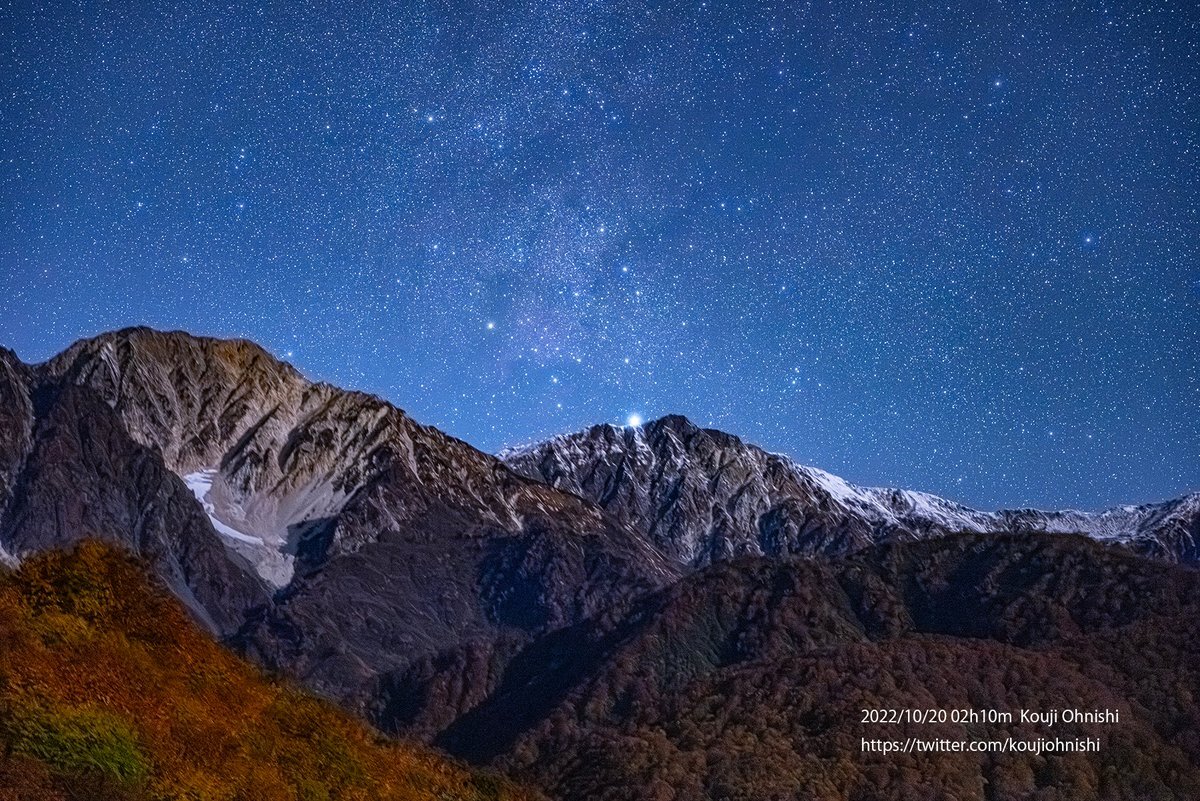 #今日の星景写真 2025年10月24日 「白馬岳に沈むデネブ」 撮影:2022/10/20 #白馬村 未明の空にはくちょう座のデネブが沈む。 白馬岳に沈む。 静かな月明かりの夜。 今年は初冠雪が遅れています。 昨晩あたり降っただろか? 錦繍の森の上に。 #デネブ #はくちょう座 #白馬岳 #長野県は宇宙県 pic.x.com/uuQslKvM2N