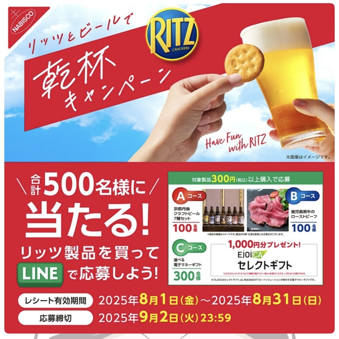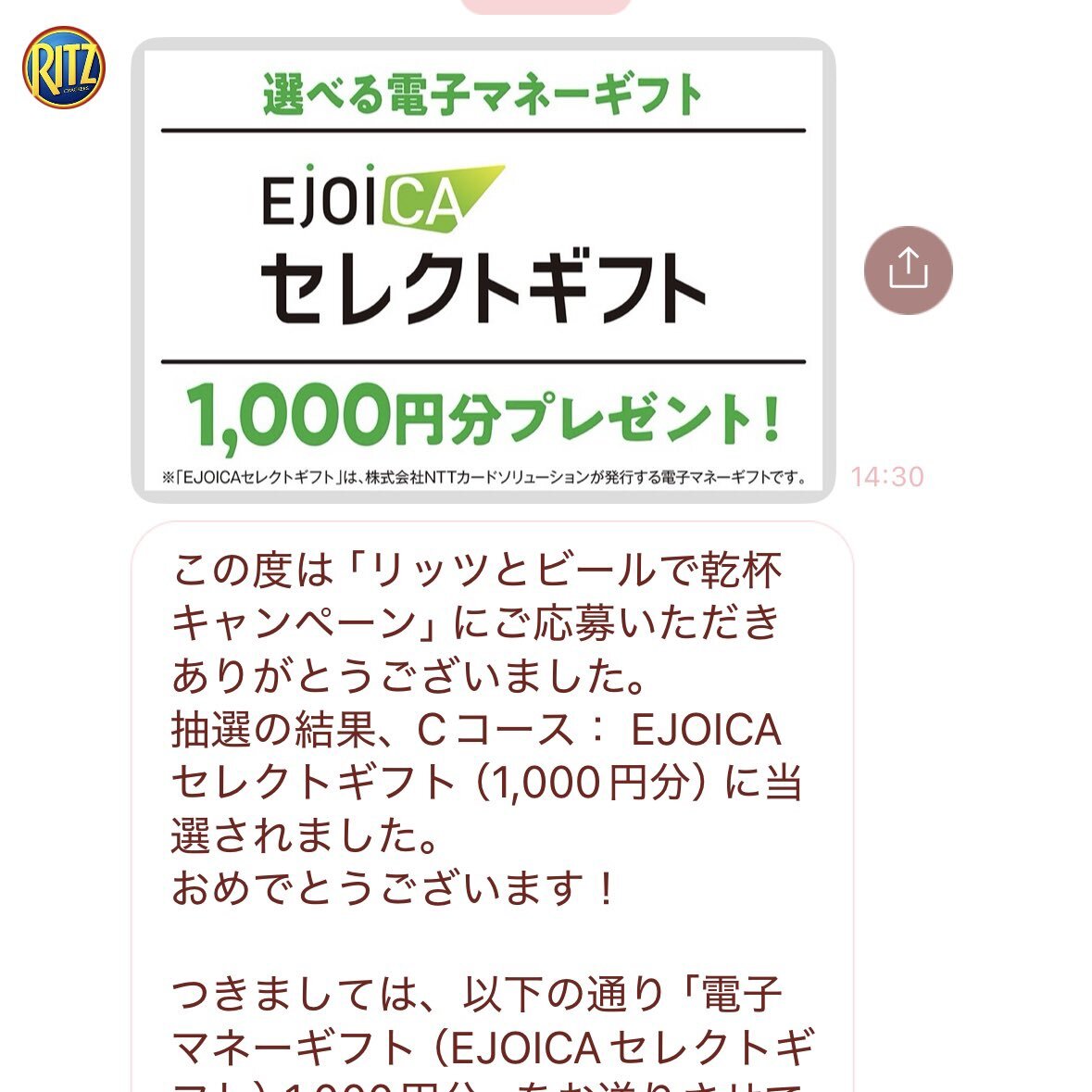 9月に🎯通知きてたの、さっき気づいた😂 気づいてよかった〜 リッツのキャンペーンで1000円分EjoiCAセレクトギフト当たってた🙌 #はくふの懸賞当選品 pic.x.com/NuNMWTIjso