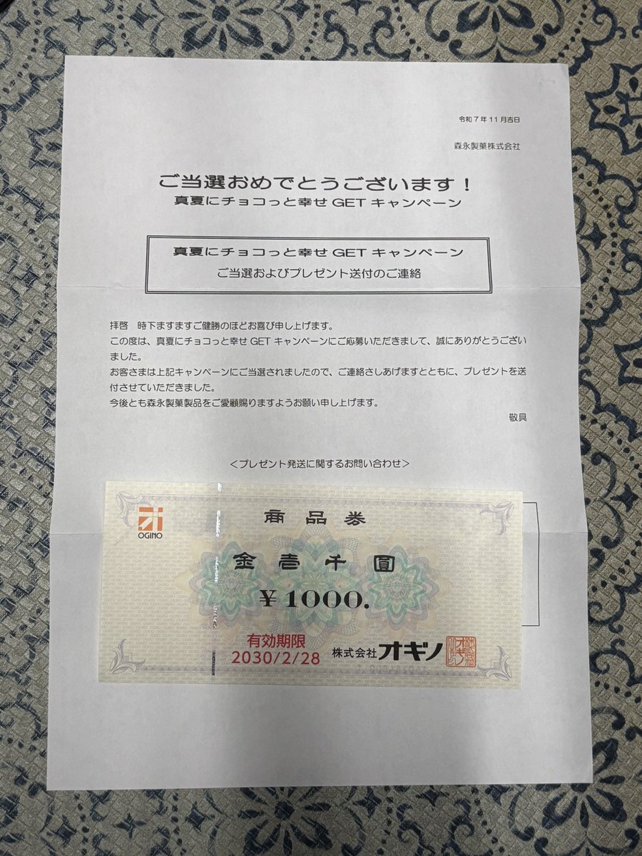 少し前に届いた当選品😊 オギノ商品券1000円 よく行くスーパーでアイス買って応募したのが実りました🌾 #はくふの懸賞当選品 pic.x.com/bAilDBhgud