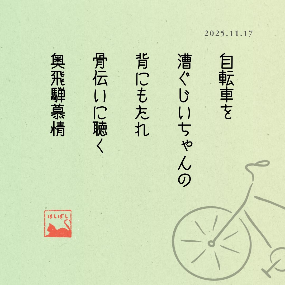 自転車を漕ぐじいちゃんの背にもたれ 骨伝いに聴く奥飛騨慕情 #11月17日の創作 #短歌 #今日の創作 #はしばし短歌 pic.x.com/0L1l416x9O x.com/tankazine/stat…