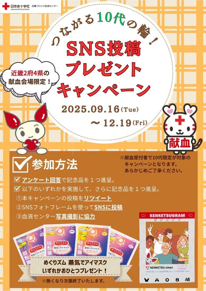 \つながる10代の輪!/ SNS投稿プレゼントキャンペーン✨ #はじめての献血 #大阪献血 #献血 x.com/osaka_kenketsu…
