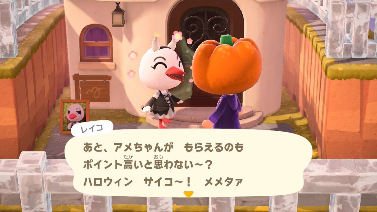 今日の夜になって、ハロウィンであることと、 #あつ森 が来年アップデートが入ることを知りました。🎃 久々に島民の皆さんに、アメを持って挨拶回りしました。 鳥さんの住人、かわいいですよね。🐓🐤 アリアさんに、レイコさん。マスターと写真を撮りました。🕊️ #はとはとはーと #どうぶつの森 pic.x.com/gy1t5UvxkK