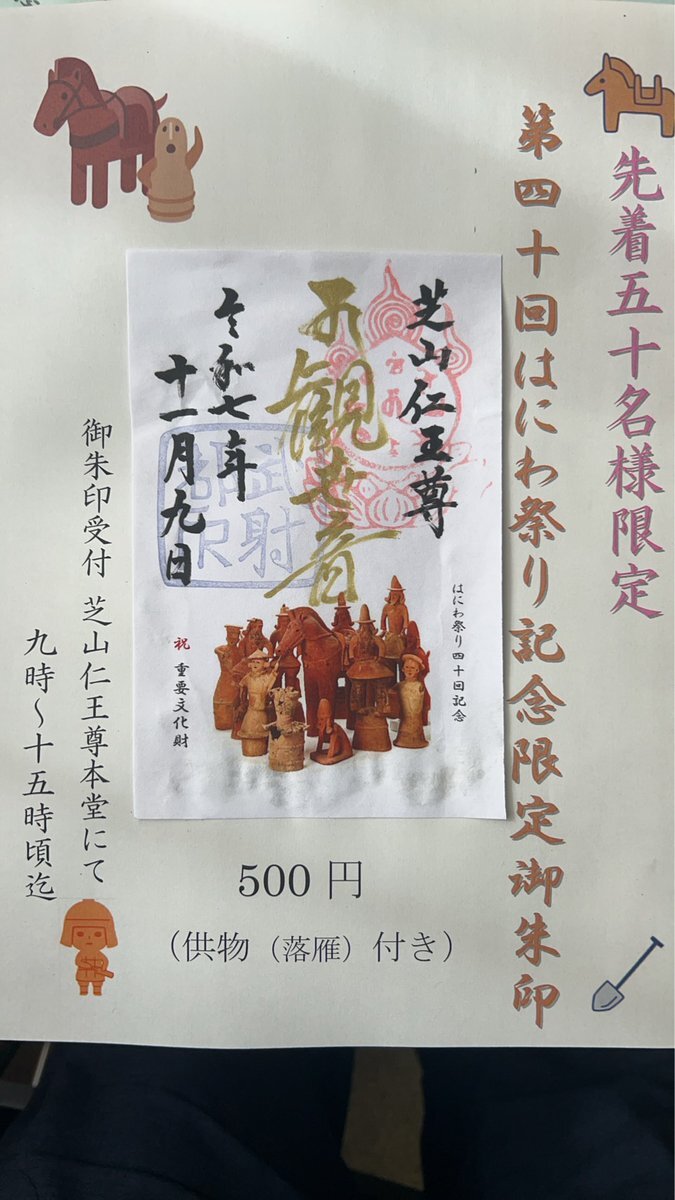 #はにわ祭 11/9(日) 今年は記念すべき〜第40回  イベント盛り沢山です😊 特別な #御墳印 #御朱印 手に入れよう〜(⁠☆⁠▽⁠☆⁠) #芝山仁王尊 #はにわ博物館 #芝山公園 #はにわ #古墳 #千葉県山武郡芝山町 pic.x.com/j4B3Vq6t44