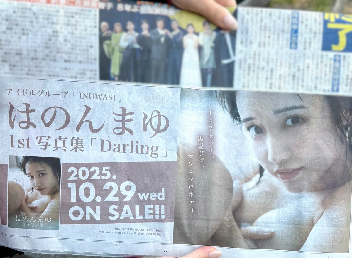🐹広告掲載🐹 本日発売の #日刊スポーツ 新聞に、 #はのんまゆ1st写真集 「Darling」の広告が、 掲載されております!🎊 ぜひ記念にGETして下さい! #はのんまゆ #INUWASI pic.x.com/eoWvVTmG4P