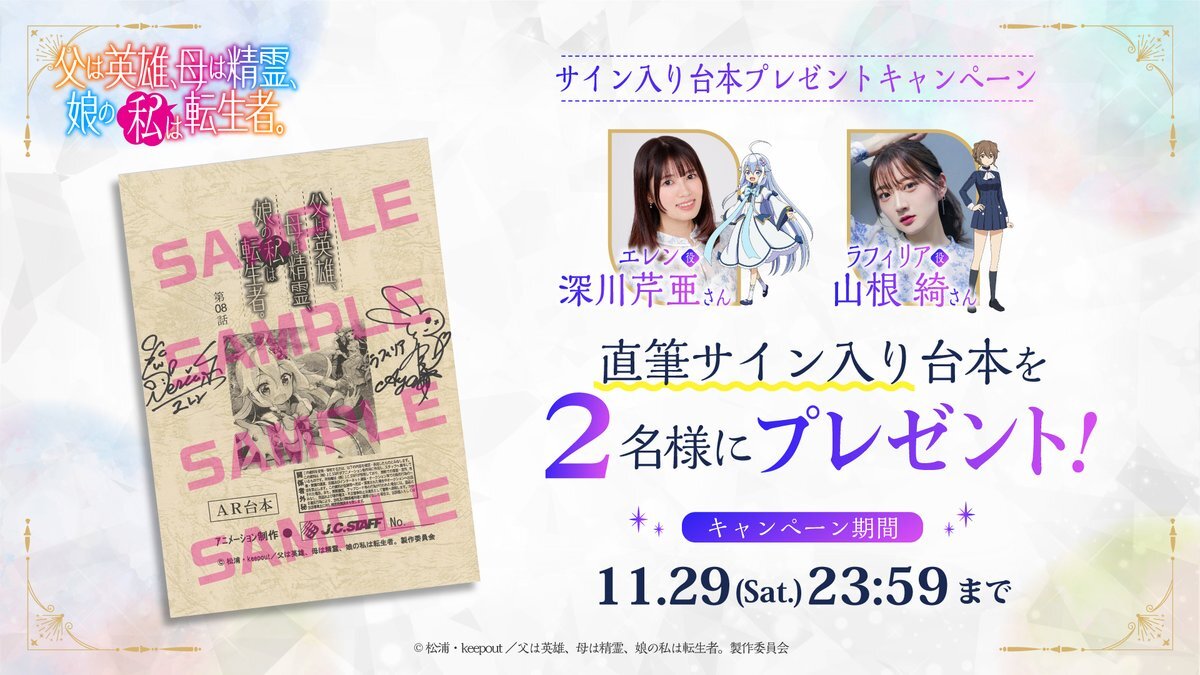 ⋆⸜#ははのは プレゼントキャンペーン⸝⋆ エレン役 #深川芹亜 さん、ラフィリア役 #山根綺 さん第8話サイン入りアフレコ台本を2名様にプレゼント🎁 [応募方法] ①@hahanoha_animeをフォロー ②本投稿をRP 💠注意事項はこちら💠 hahanoha-anime.com/news/post-51/