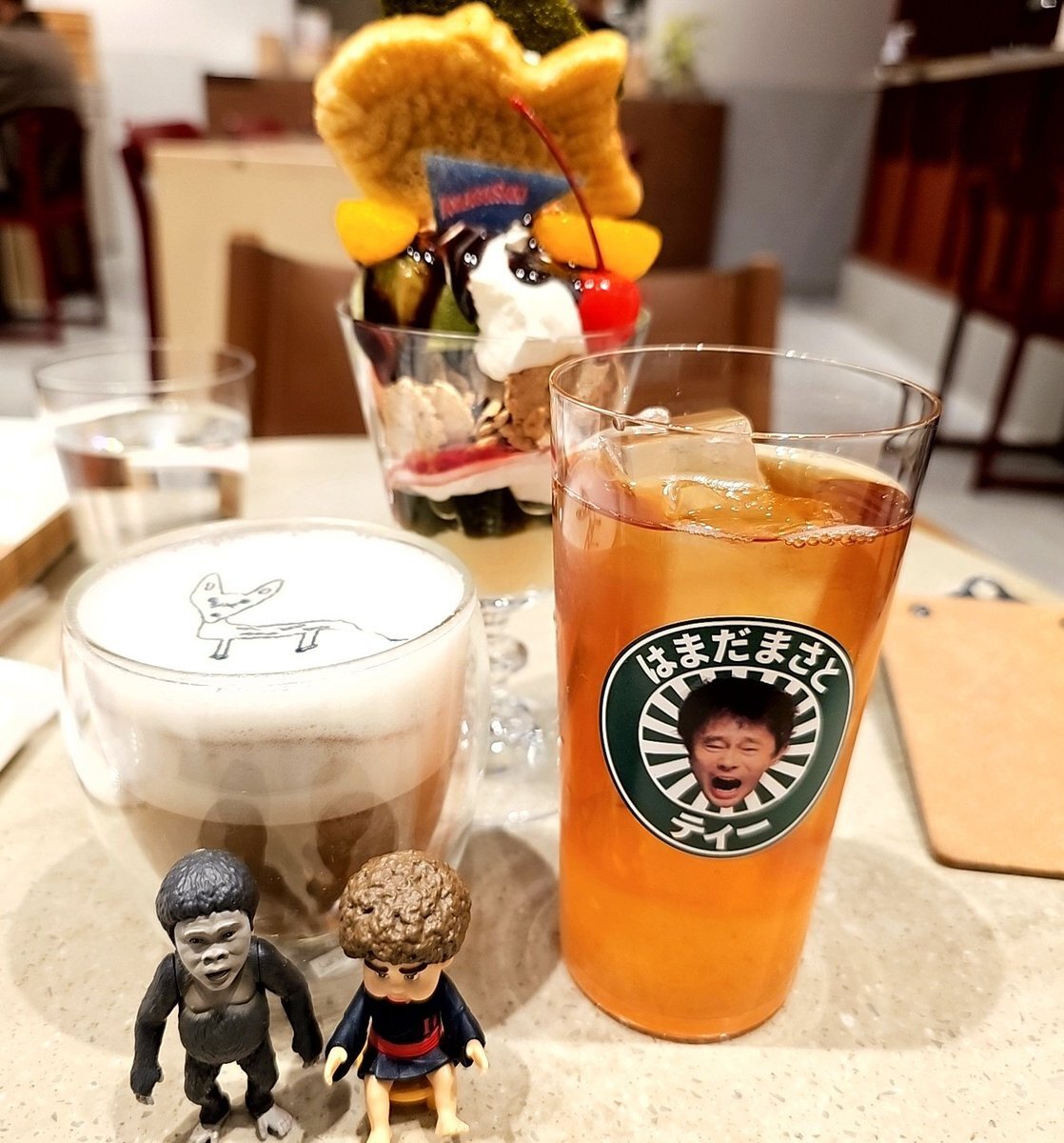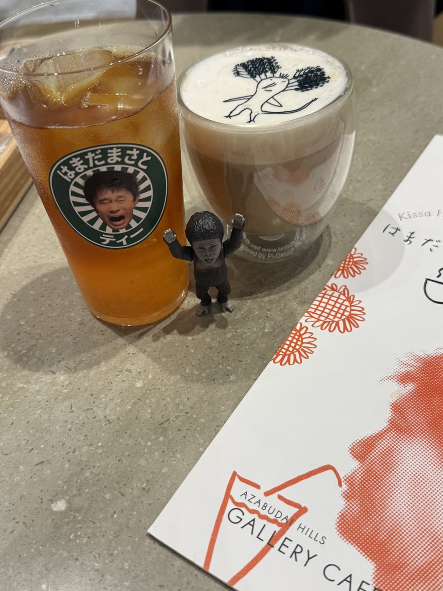コラボカフェメニュー✨️🍽️この後用事があるため、ゆっくりは味わえなかったのだけど、浜田ゴリラテがめちゃめちゃ美味しかった!!🦍これだけでもまた飲みに行きたいくらい😳 #浜田雅功展 #はまだまさとティー pic.x.com/I6A35vHC7h