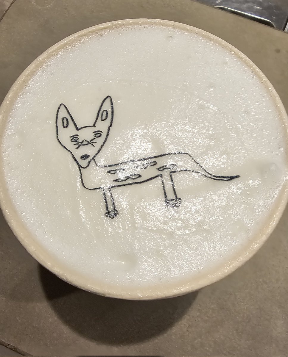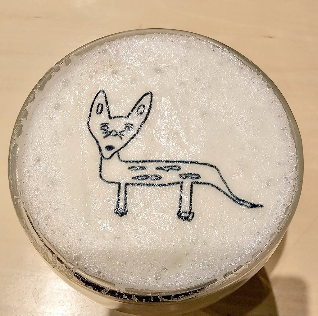 今日は昨日食べれなかったコロッケとラテと、もちろんはまだまさとティー✨ 本当毎日食べれる✨それくらい美味しい😋 来週は仕事帰りに夕飯で来るぞー(*'∀'人)♥*+ #浜田雅功展 #空を横切る飛行雲 #はまだまさとティー pic.x.com/jg1Cl39CeK