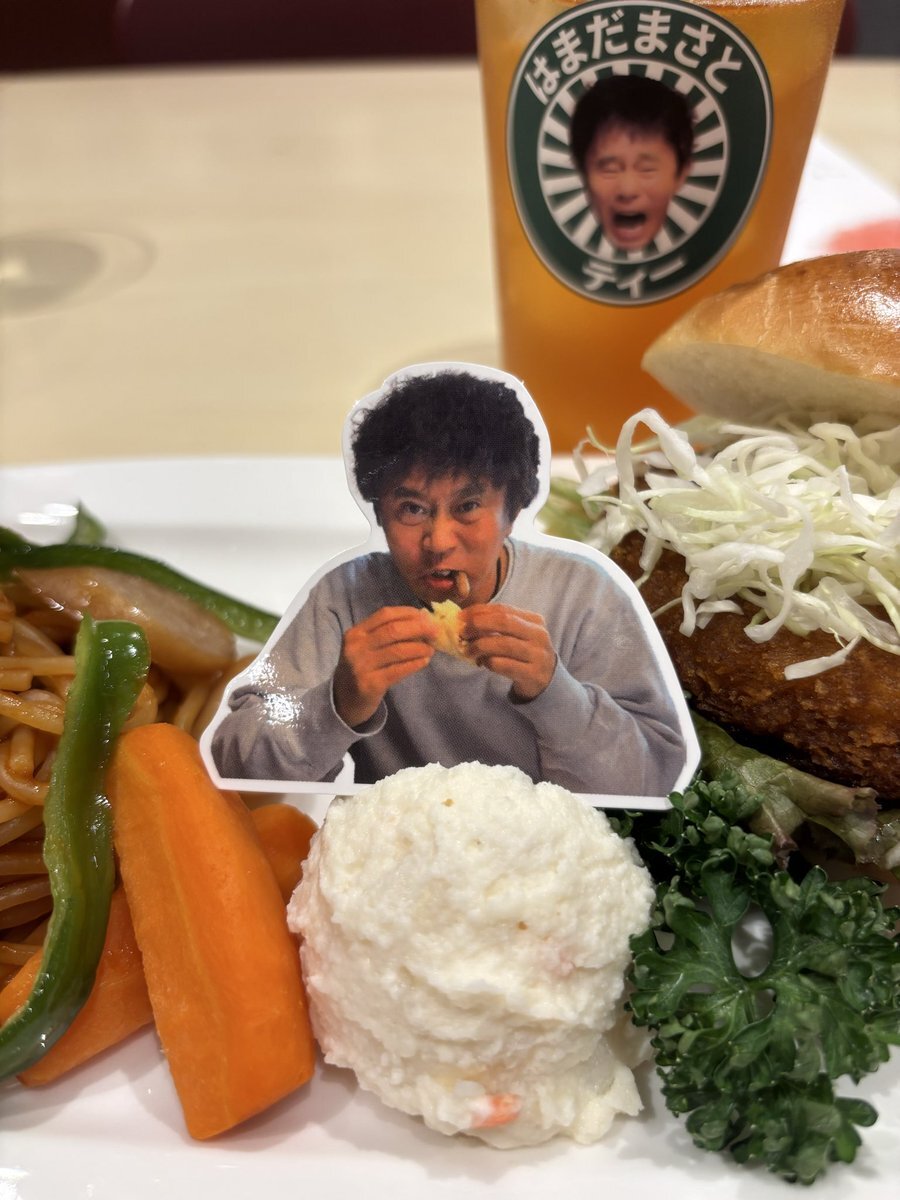 仕事が現直からの職場だったから、浜田雅功展からのお昼は喫茶はまだまさとティー✨ いや、来すぎよねわかってる😅だって最高なんだもん✨ ダウンタウンファンはみんな行った方がいいよパワースポットだから🤭 今日はテイクアウトもしたから、頑張って働く💪 #浜田雅功展 #はまだまさとティー pic.x.com/U3REtVi20v