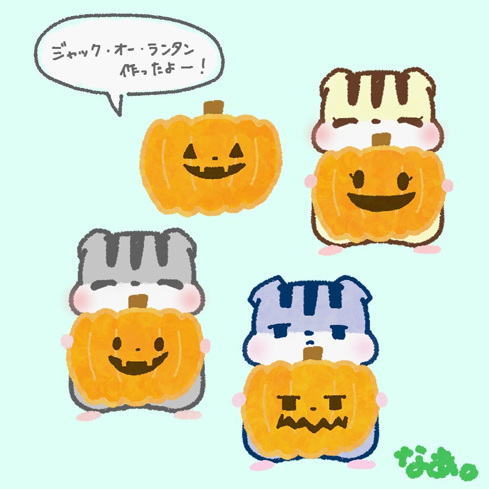 【10月18日】 昨日のジャックオーランタンの左上の子は実ははむかくくん作です🐹🩵 なあ。のSNSはこちらから💁🏻‍♀️ 【lit.link/na0515#一日一絵 #はむかくくん #はむまるくんの毎日便り #イラスト好きな人と繋がりたい pic.x.com/MvaletTIlq