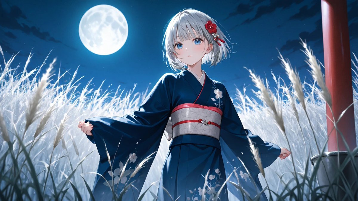 #ひでさんとお月見しよ #AIイラスト︎ 黒髪なのになぜか銀髪になってしまった妹ちゃんの図_(:3」∠)_ pic.x.com/iCih0mvV4e x.com/hidekame0116/s…