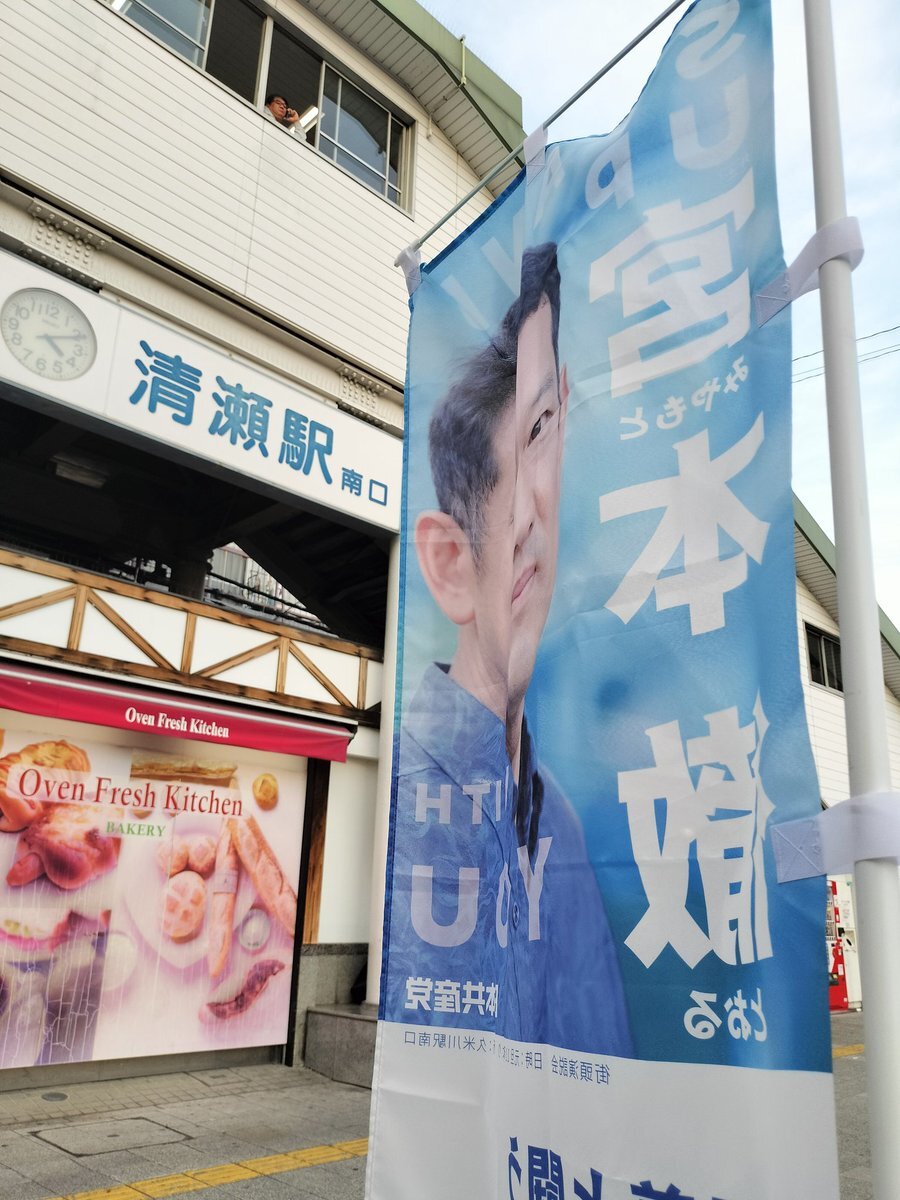 #ひとり街宣 です🔥 20区の期待を背負い日々活動する #宮本徹 さん 宮本さんは1人だけど、のぼり1枚で宮本徹が100人力𓀠𓀡 𓁉 𓀤 #日本共産党 1730~ご本人も来ます🎤 @清瀬駅南口 のぼりの貸し出し出来ますのでDMください😙🙌 #宮本徹がいない国会なんて pic.x.com/hzN2qGH5Ri