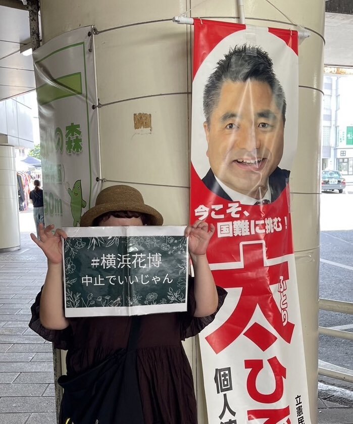 今週はまた 大和に来ました 太ひでし候補の街宣のおとなりで #ひとり街宣 #ひとりスタンディング #木を切る政治家退場させたい 自公維新だけじゃないぞ! #横浜花博中止でいいじゃん pic.x.com/V6m2KIvBcq
