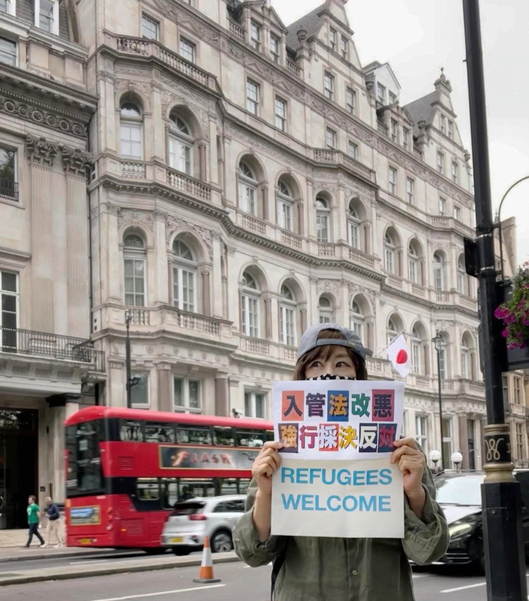 返信先:@kindness_world_1ロンドンの日本大使館の前で、#入管法改悪反対 #ひとり街宣 スタンディング。まだまだこれから。 ひとり街宣の大先輩、古澤裕介さん @yskfrsw0130 や杉並区住民の方々、フォローさせていただいているたくさんの方々のアクションにインスパイアされてきました。 一度すると度胸つきます。何でも来い。