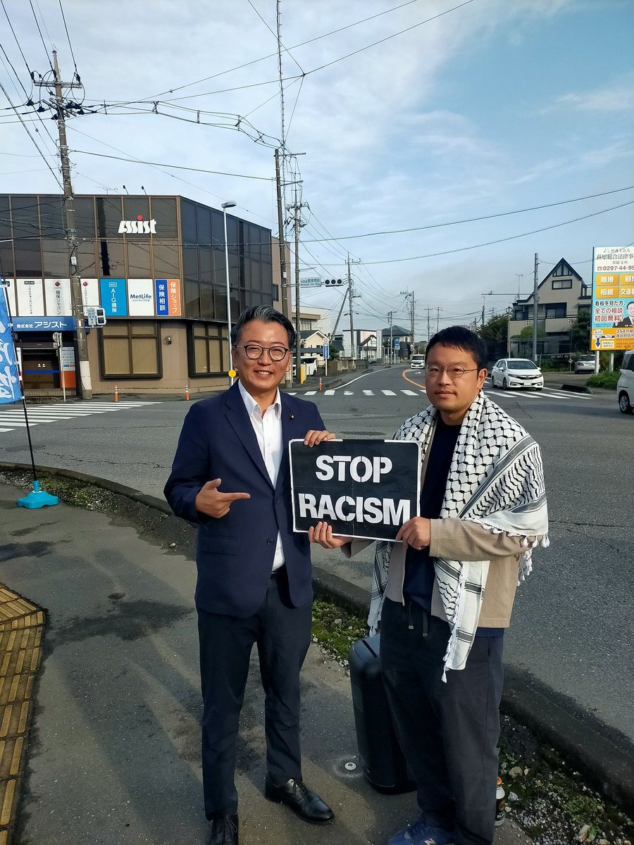 2025/10/02 #ひとり街宣 ? 「久しぶりに朝立てるな」と思ったら、中村はやと代議士が先に街頭活動してました。茨城7区は朝から元気です。 #わたしは差別に抗う #地域から差別に抗う #差別から子どもを守ろう #分断と闘う pic.x.com/UDG1i4nB6q