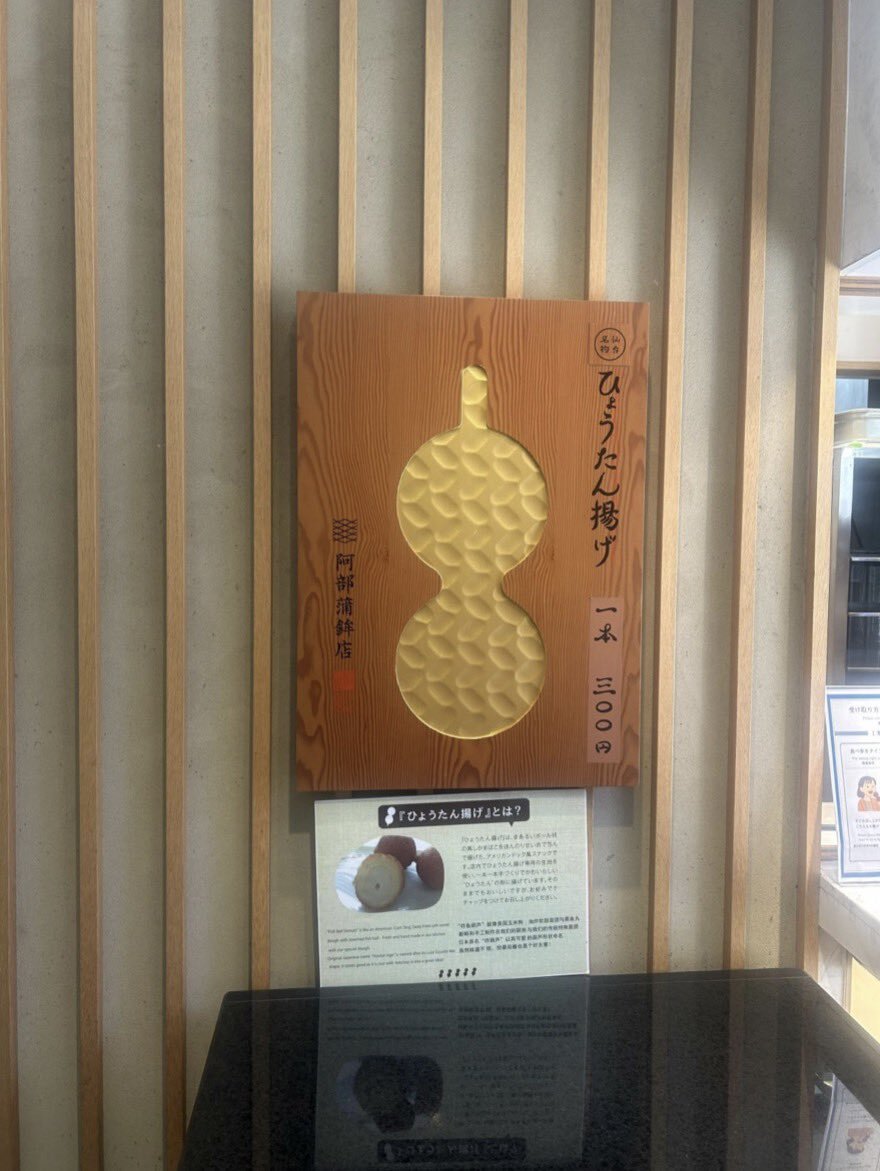 阿部蒲鉾店 仙台 ひょうたん揚げ300円 仙台名物のひとつ 簡単に味の感想すればアメリカンドッグの中身が蒲鉾ですね もちろん違和感なく美味しいので仙台散策の小腹に最適 #仙台 #ひょうたん揚げ pic.x.com/1mPfYKwZLU
