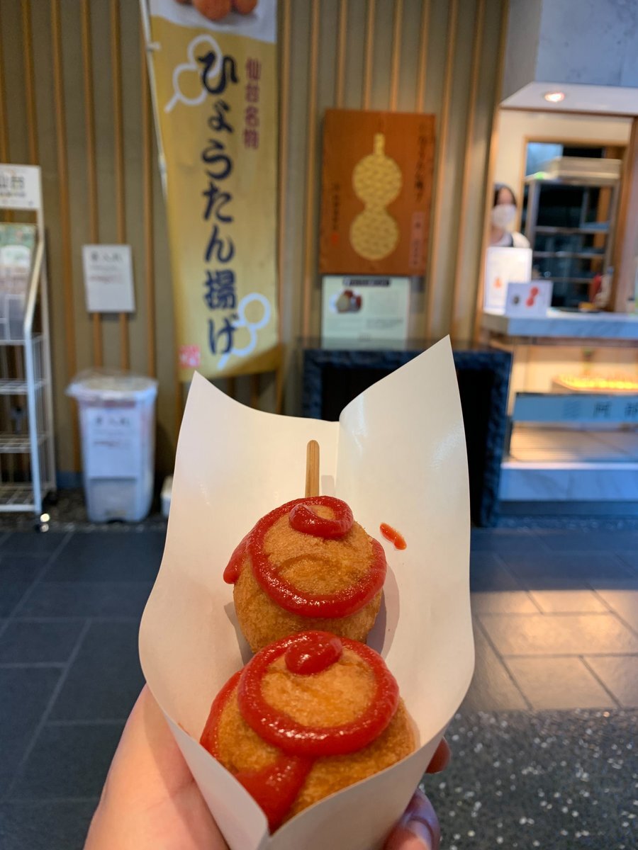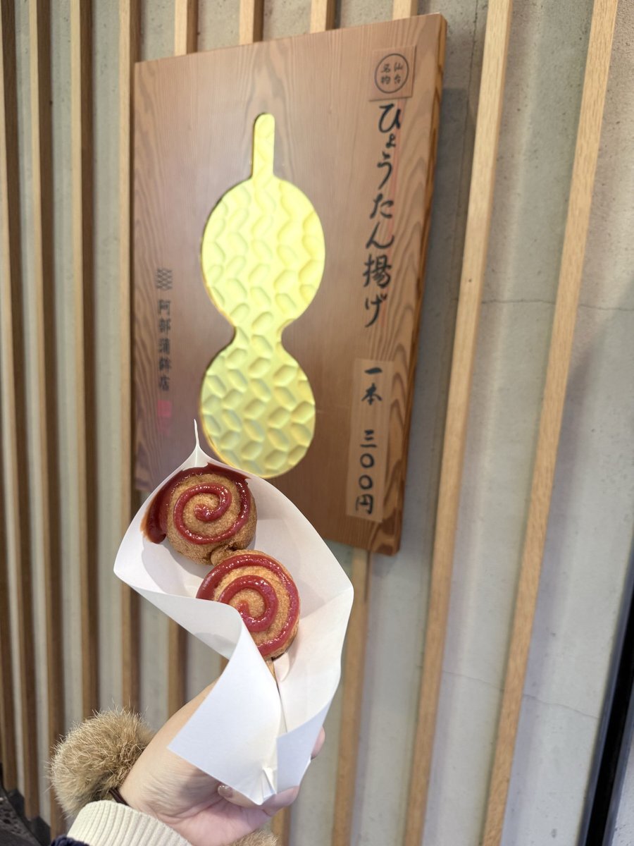 そのあとは腹ごしらえに仙台駅までまた歩いてふらふらしながらおしゃべりして、気になっていた阿部蒲鉾店さんのひょうたん揚げを食べました🤤中が蒲鉾で新しい感じなのに外がアメリカンドッグの衣だから懐かしさがあって、甘くて美味しかったです💓 #阿部蒲鉾店 #ひょうたん揚げ pic.x.com/kBJHF736rv