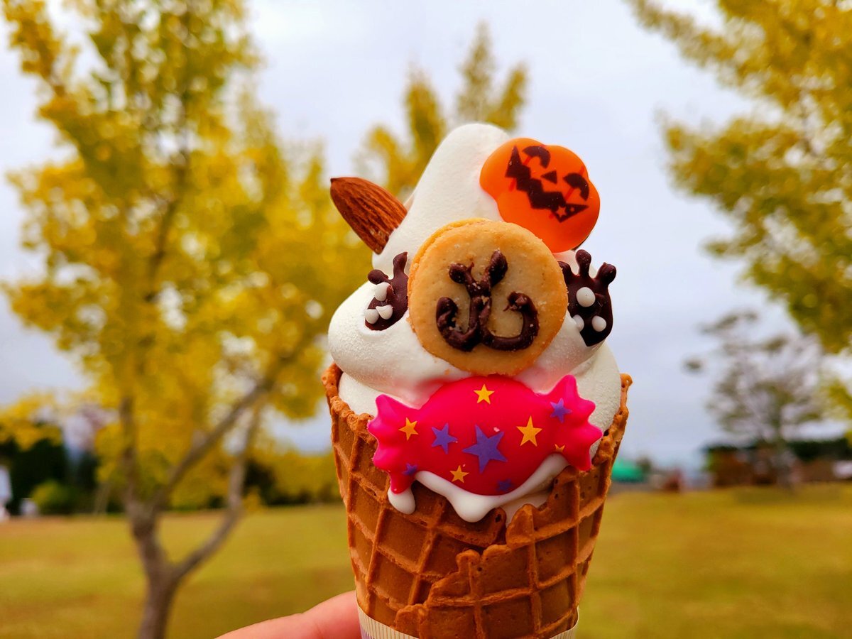 アルパカちゃんのソフトクリーム! ハロウィン限定バージョンです笑 #ひるがの高原牧歌の里 #ひるがの高原 pic.x.com/sl5JvUn1fS