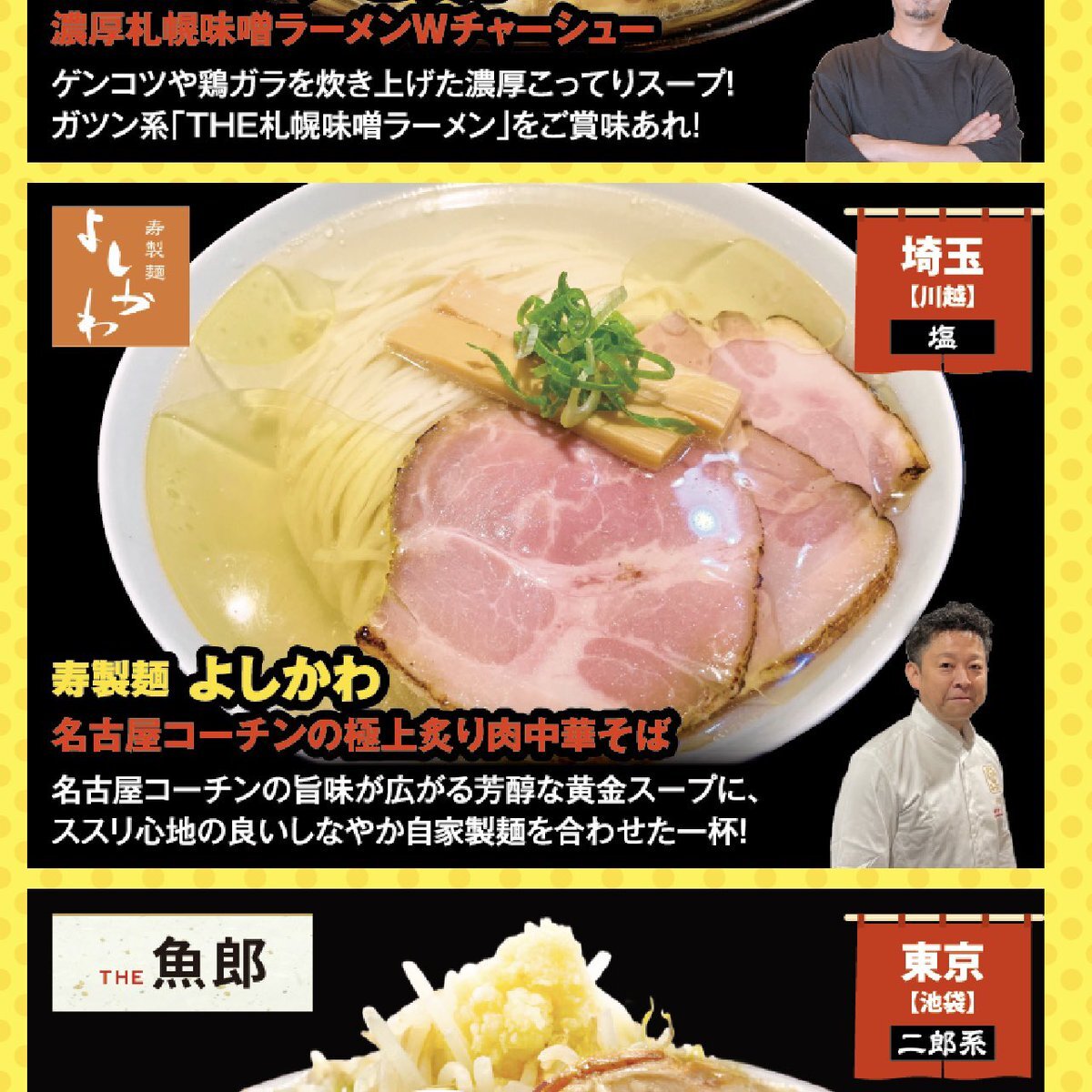よしかわ来るやん! 埼玉のころ近所だったし一番食べいったラーメン屋や! これは行かねば!! ただ、限定か白醤油ばっか食べてて名古屋コーチンのは食べたことねぇんよな😇 #ひろしまラーメンスタジアム #寿製麺よしかわ pic.x.com/eKOcHTEDTT