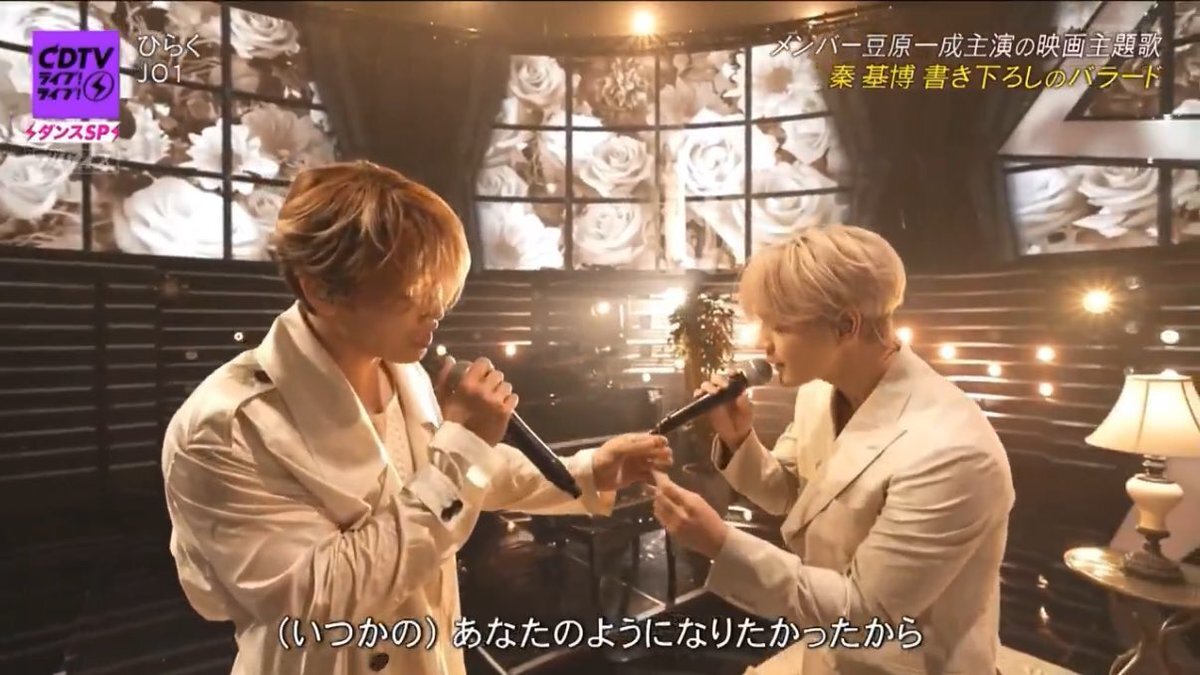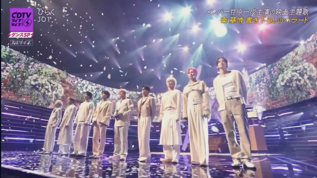 “歌って踊るパフォーマンスグループ“がバラードをどうみせるのかな?ってのも気になってた。けど考えてみればこれまで音楽特番で何度も他の方のカバーをやらせてもらって、ミュージカル調の演出も上手だったな、と。↓ #CDTVライブライブ #ふじこーひーとJO1とひらく未来 #JO1 @official_jo1