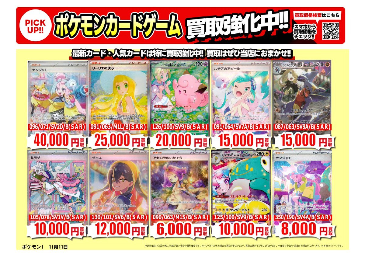 #ポケカ |高価買取情報 トレカ売るなら、ぜひ古本市場・ふるいちへ 一点から買取実施いたします ※11/12時点の価格です。 ※在庫量、商品状態により価格が変動することがございます。 #トレカ 価格検索 furu1.net/kaitori/sell_t…