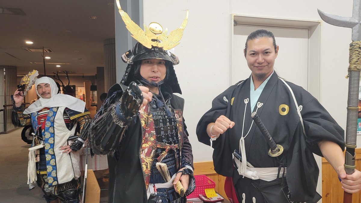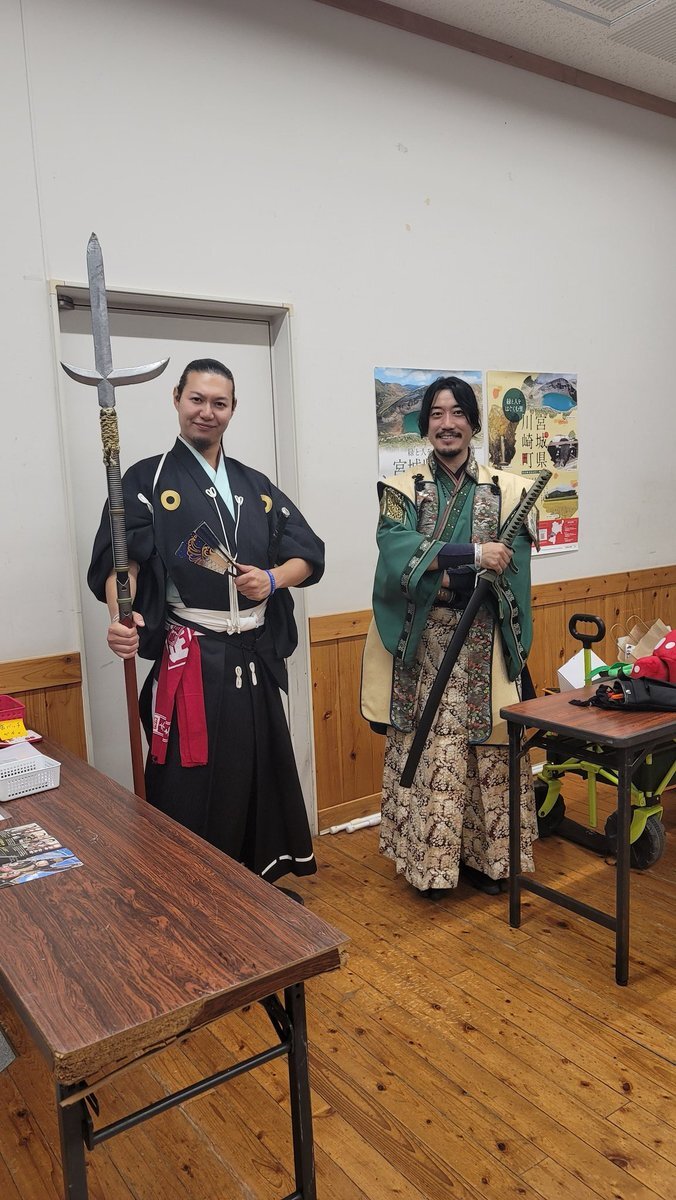 オマケ とにかくやり取りが笑いに包まれてた 写真を頂いた方々 #前田慶次 さんと #奉行 さん🤣 ちなみに姿は見えませんが、終始ツッコんだり指さされて悪者扱いされてたのは #支倉常長 さんです🤣 #菊花の陣 #ふるさと村 #やまがた愛の武将隊 pic.x.com/CclKbNPmHm