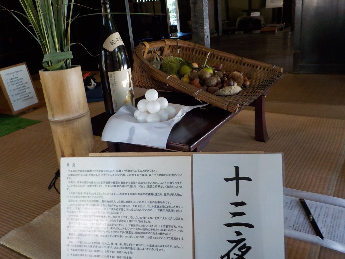 ふるさと村では、「月見(十三夜)」を10月29日(水)~11月3日(月・祝)まで展示しております。十三夜ではススキを十三本、お団子に柿、栗、芋などを箕に入れて月にお供えします。 #小平 #ふるさと村 #月見 #十三夜 # pic.x.com/0PxDuUDOjs