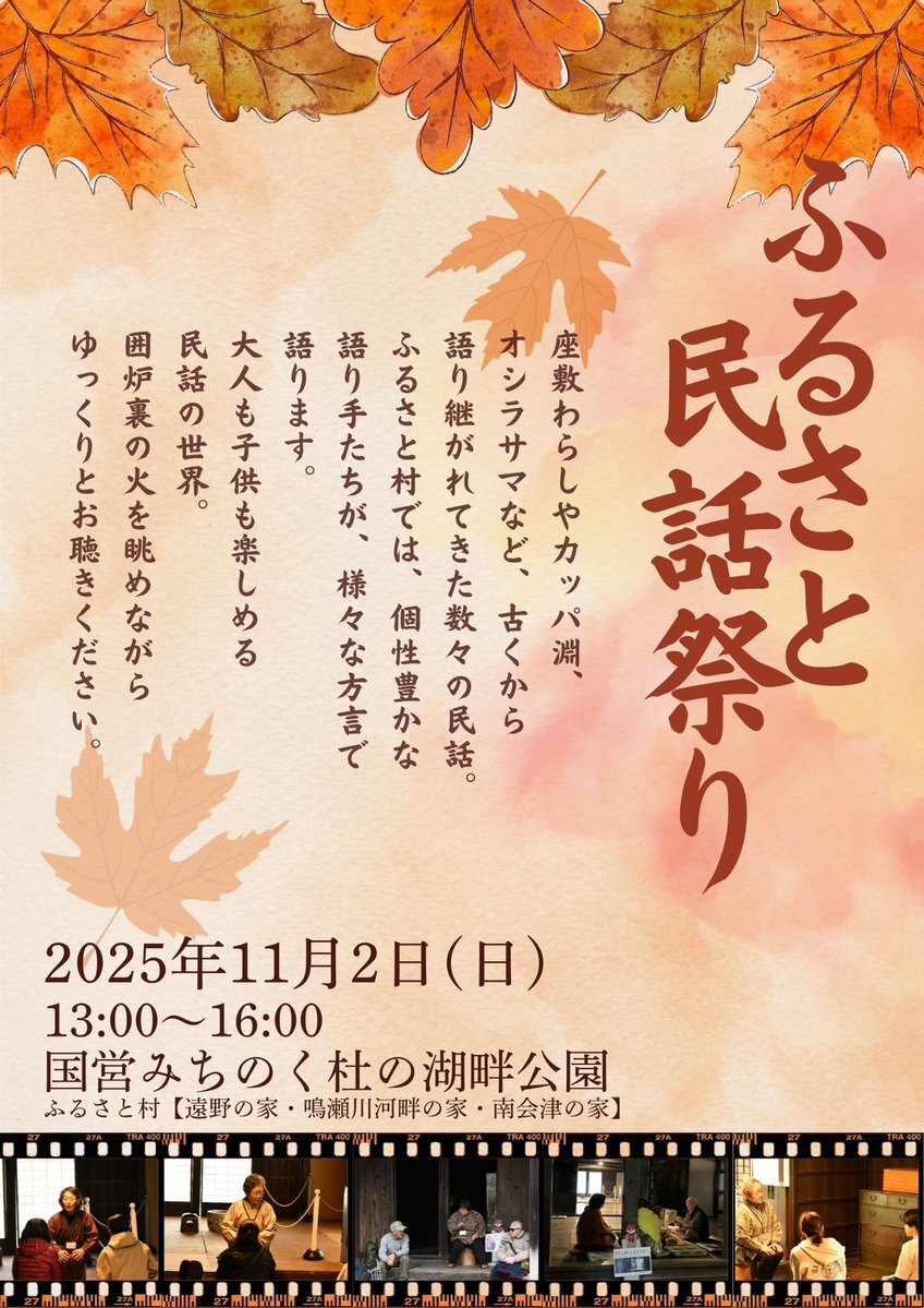 【ふるさと民話祭り🍁本日開催】 ふるさと村の各古民家にて、ふるさと民話祭りを開催いたします。 秋灯りのライトアップ点灯まで、古民家でごゆっくりお過ごしください🍵 日程:11/2(日) 時間:13:00〜16:00 #ふるさと村 #古民家 #民話 #秋灯り #ライトアップ #川崎町 #みちのく公園 pic.x.com/AoyU2hJIaT