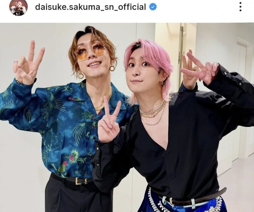 返信先:@SAK_SAK_SAKUMA今日はアーティスト同士キラキラ✨だね ぶーさく⛄🦫仲良し可愛い さっくんスタイル良🩷素敵カッコイイ #ぶーさく #佐久間のイソスタ