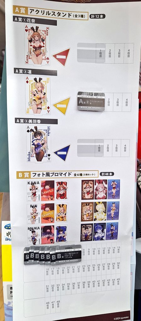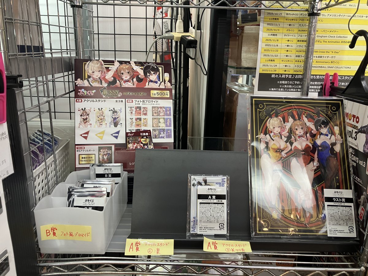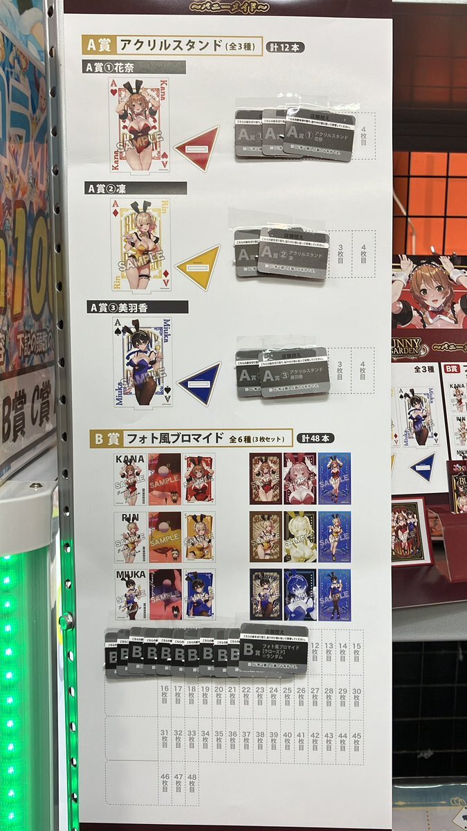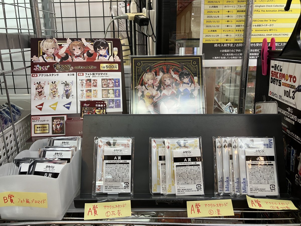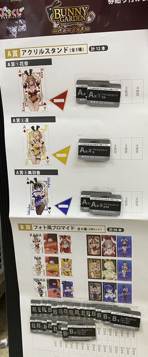 【 #ぷちくじ 消化情報】 #バニーガーデン #bunnyGarden バニーメイド 1回税込500円 残り30口 A賞 ①花奈 3点 ②凛 2点 ③美羽香 4点 残っております‼️ チャレンジお待ちしております💪✨ #ブックタウン犬山五郎丸店 pic.x.com/YWmeZjLB9M