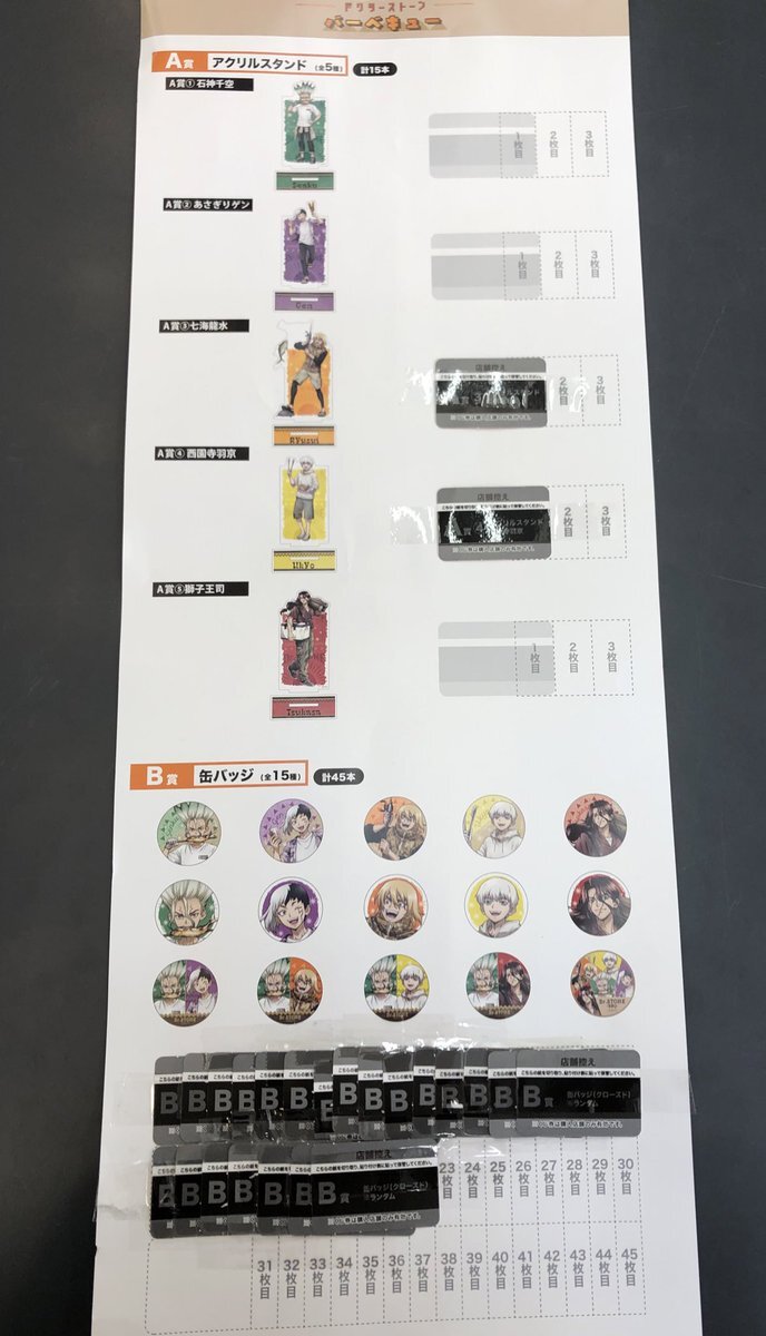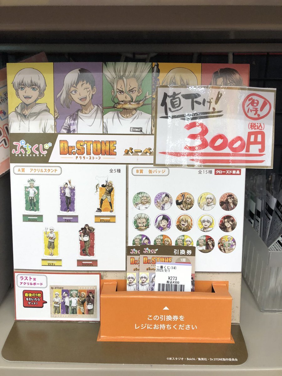 #ぷちくじ #Dr.STONE バーベキュー 残り:36口 こちらアクリルスタンドが12口残ってます✨️ お値段も300円まで値下げされておりますので今がチャンスかも…⁉️ 是非チャレンジしてみてくださいね♪ pic.x.com/BCbDODh5r2