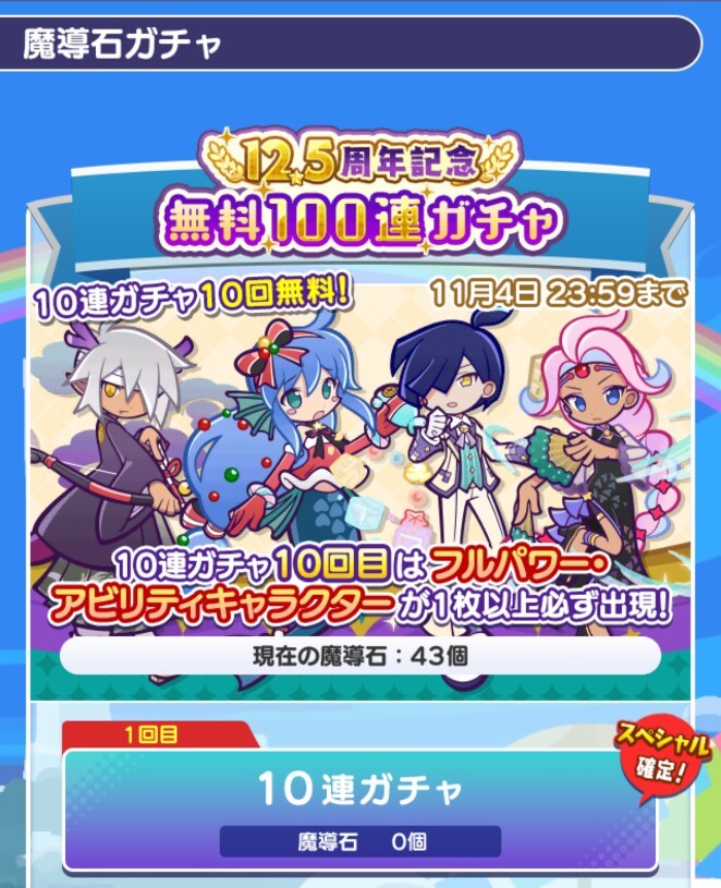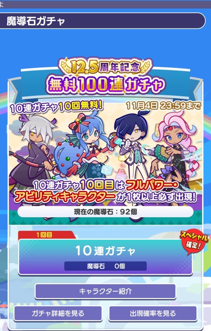 // ぷよクエ12.5周年記念 🎊SNSキャンペーン🎈 \\ 🎁プレゼント内容 金賞🥇お好きな★6キャラクター1体 3名様 銀賞🥈魔導石24個 15名様 ✅参加方法 ①@puyoquest をフォロー ② #ぷよクエ12_5周年 とお気に入りのキャラクター&背景のスクリーンショットをつけて、本ポストを引用ポスト
