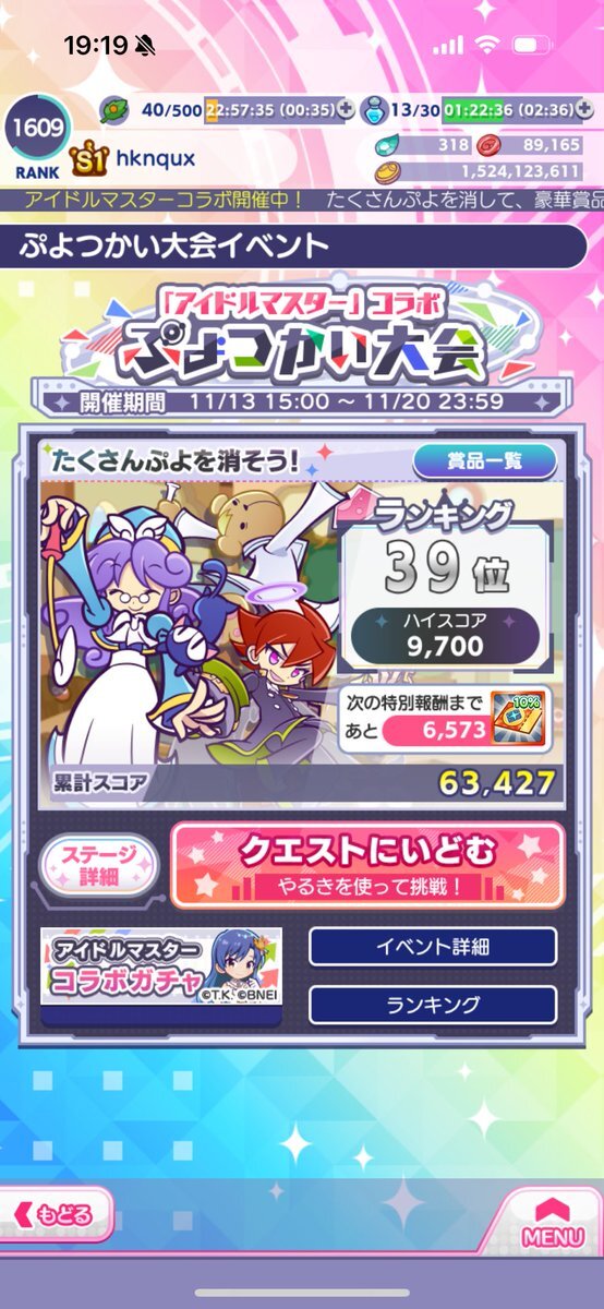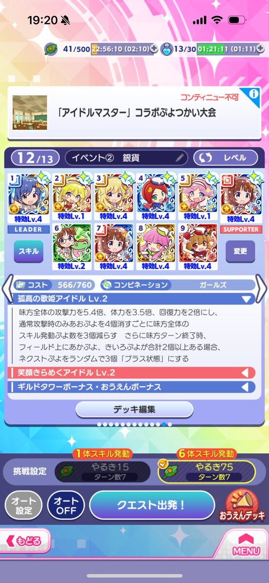 「アイドルマスターコラボ ぷよつかい大会」のデッキ、もっといいのある…? 基礎のスコアがなかなか伸びへんねんけど、コレってブーストエリアの問題?? イベント始まってスグやから、あっという間に順位落ちる(;´∀`) #ぷよクエ #ぷよぷよクエスト pic.x.com/LPbY0DzmfN