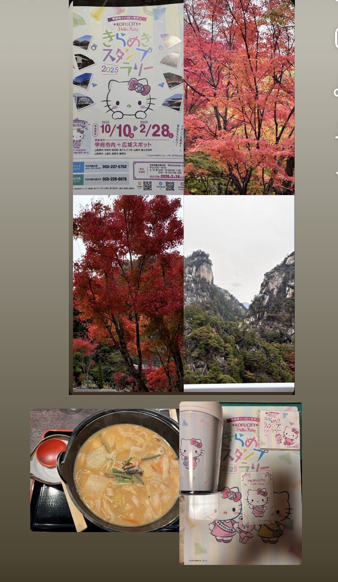 おはようございます 昨日は #甲府キティスタンプラリー🚙へ #武田神社、 #昇仙峡 などを周り、お昼は #ほうとう 1日楽しかった🥰💕 #THANKYOUSOMUCH!!💿まで後9日😊💖 今週もよろしくお願いします🍁 佳き一日を🍀 #サザンオールスターズ #サザンへ愛を叫ぶ会 #シェアハピネス pic.x.com/j0RB8fWgMj