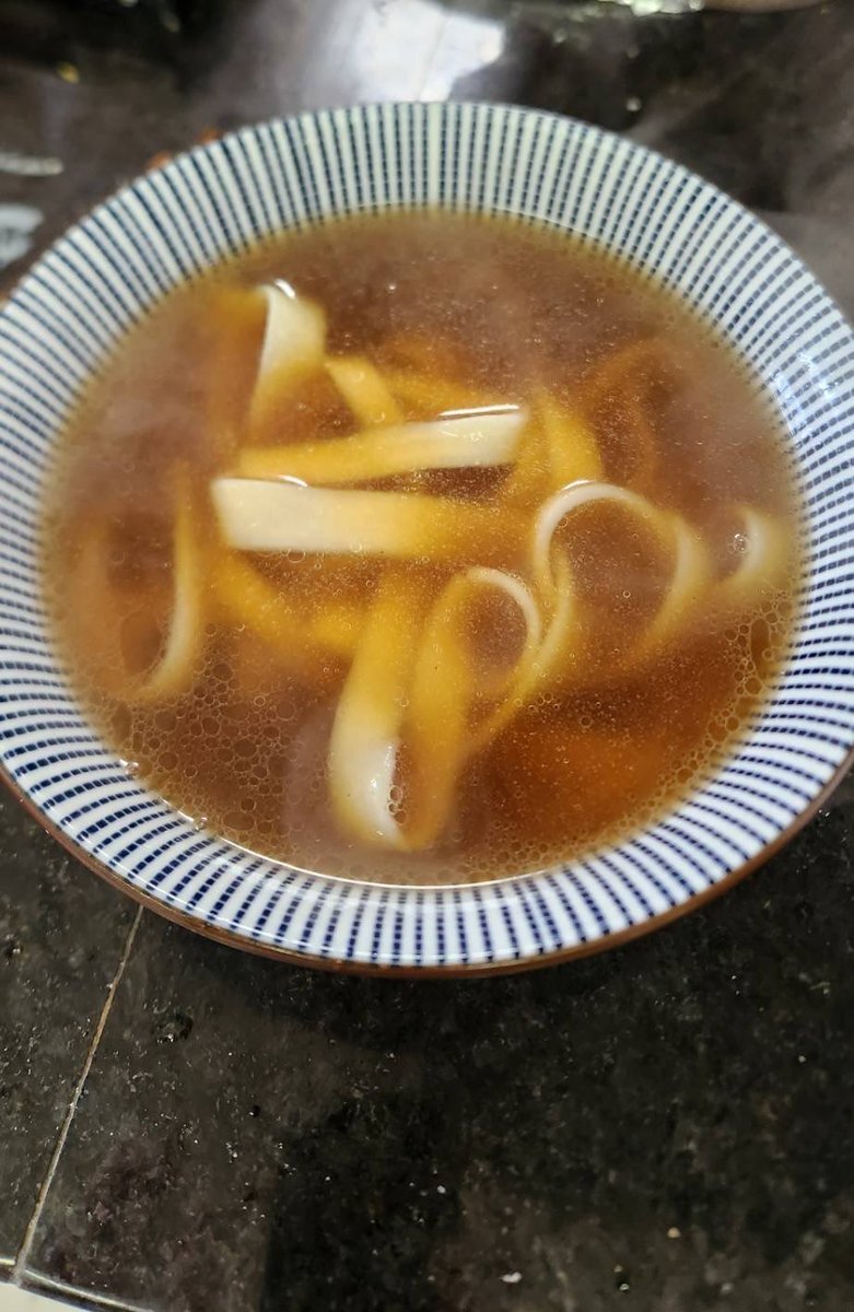 ヤスです!続きね🍜 #ラーほー はスープは #まぐろ醤油 との事ですが濃くて一見味噌風?👀香りは強めの #魚介系 🐟ゆで上がりは正に #ほうとう 😃味は意外と? #正統的醤油ラーメン でちょっとびっくり😲 #太麺好き なので気に入りました😋では又ね🙋 #ミンキーヤス #TOKAIRADIO #レインボータウンFM pic.x.com/Wnb6mdv4WY