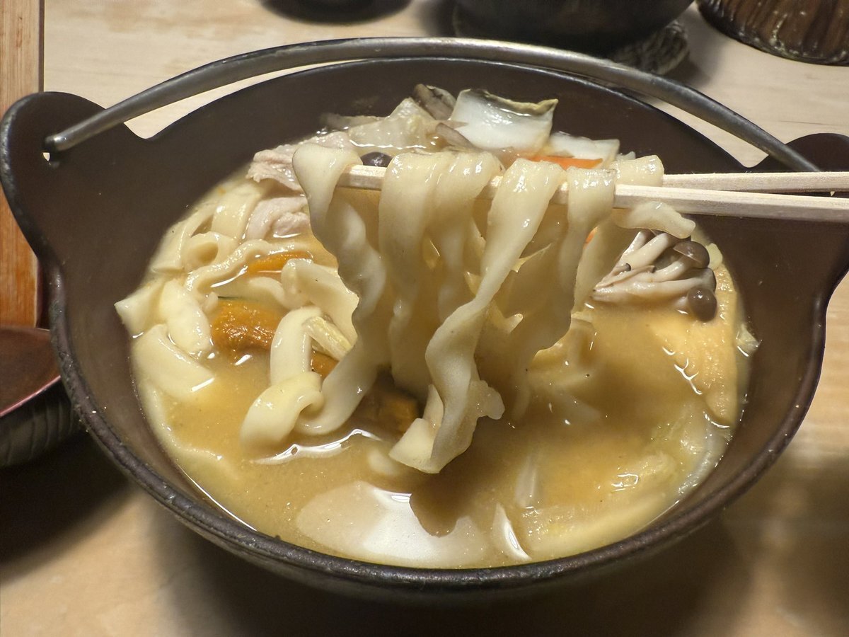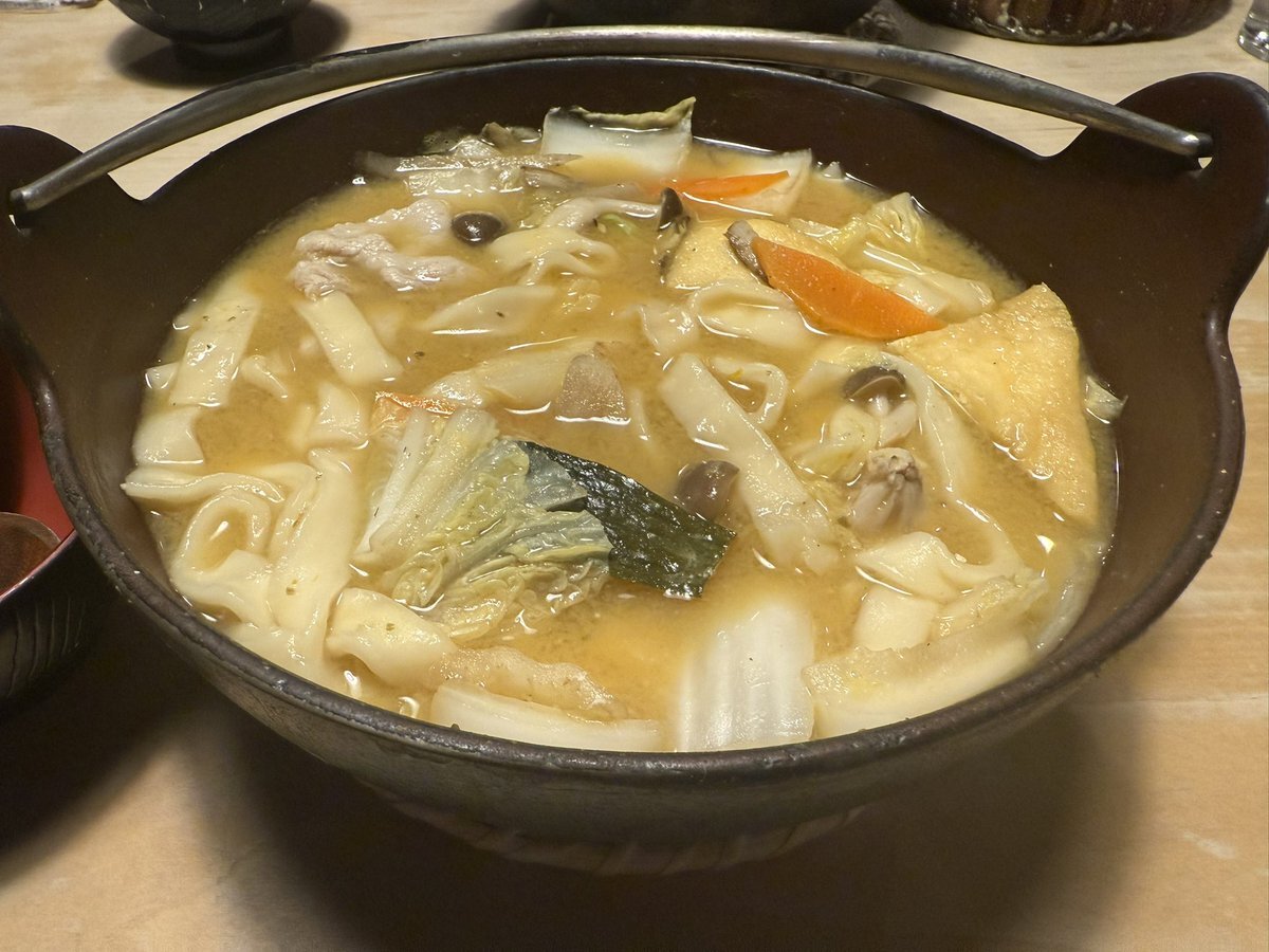 山梨県富士吉田市『ほうとう蔵歩成』黄金ほうとう (豚肉入り) ぶらり車中泊の旅② 富士吉田に来たらやっぱりほうとうが食べたくなる😁 白菜、かぼちゃ、豚肉他具沢山で美味しすぎる😋 #ほうとう蔵歩成 #富士吉田グルメ pic.x.com/PlYWLpbyMk