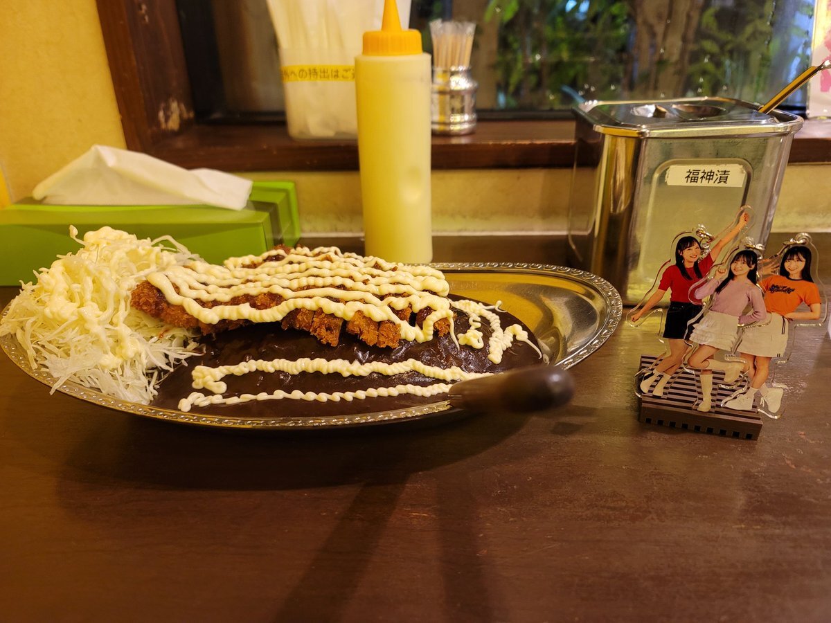#ゴーゴーカレー で、ロースカツカレー大盛🍛withツエーゲンガール👧 急に食べたくなって…😋 カツとキャベツにマヨをたっぷり‼️ ハイカロリーだけど、簡単に肥えない体質なので問題ナッシング🤣 #ほくりくアイドル部 #ほくりくアクキー部 #辰巳未来春 #羽場朱里 #中宮果杏 pic.x.com/RzTPaT3AYj