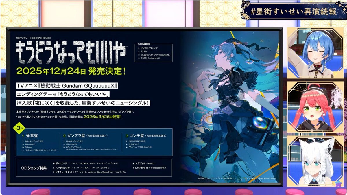☄️お知らせ☄️ TVアニメ『機動戦士Gundam GQuuuuuuX』EDテーマ 「もうどうなってもいいや」のシングルCDリリース決定🎉 💿️通常盤:2025年12月24日に先行リリース 💿️完全生産限定盤:2026年3月25日発売 🔽予約はこちら🔽 hoshimachisuisei.lnk.to/I_dont_care