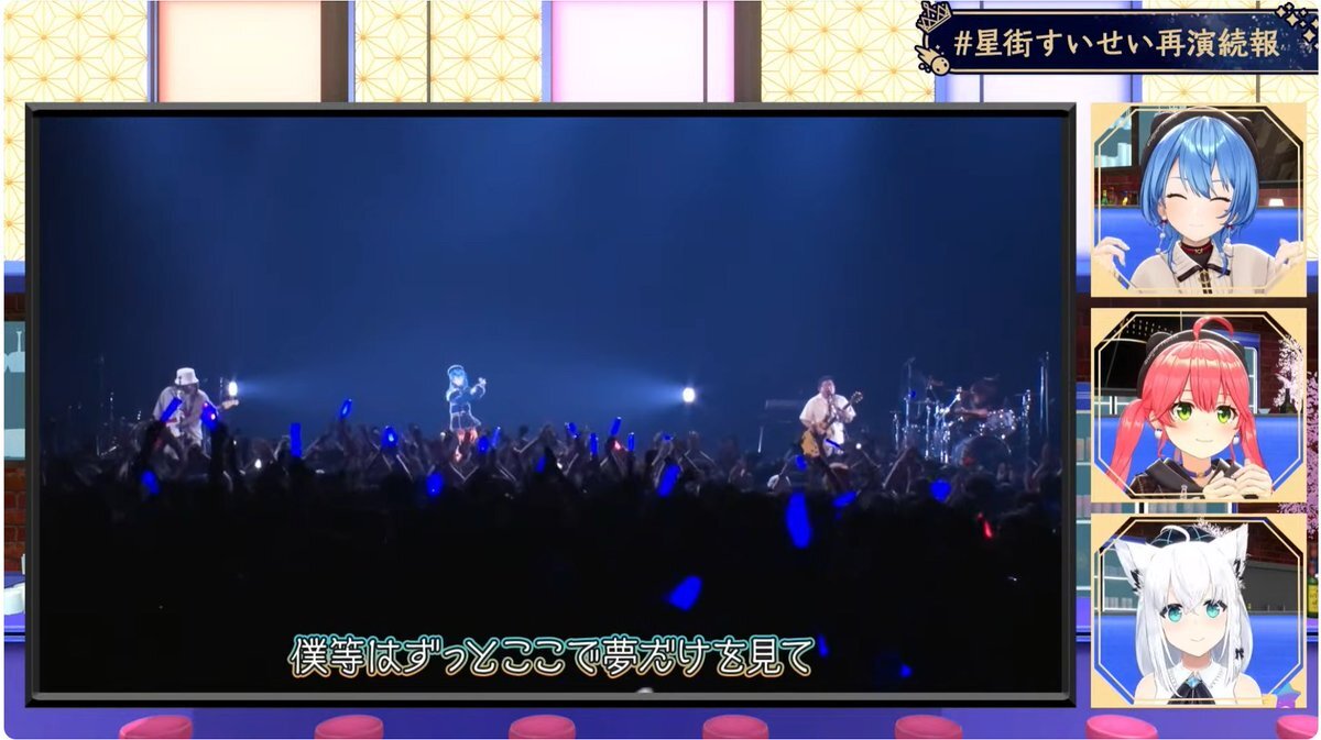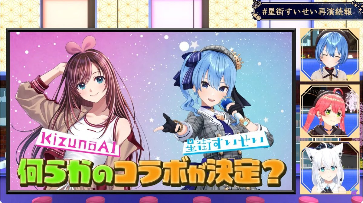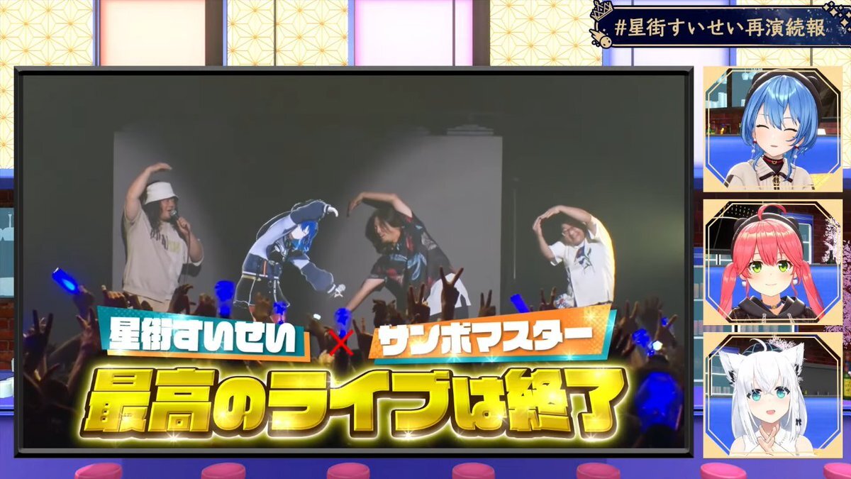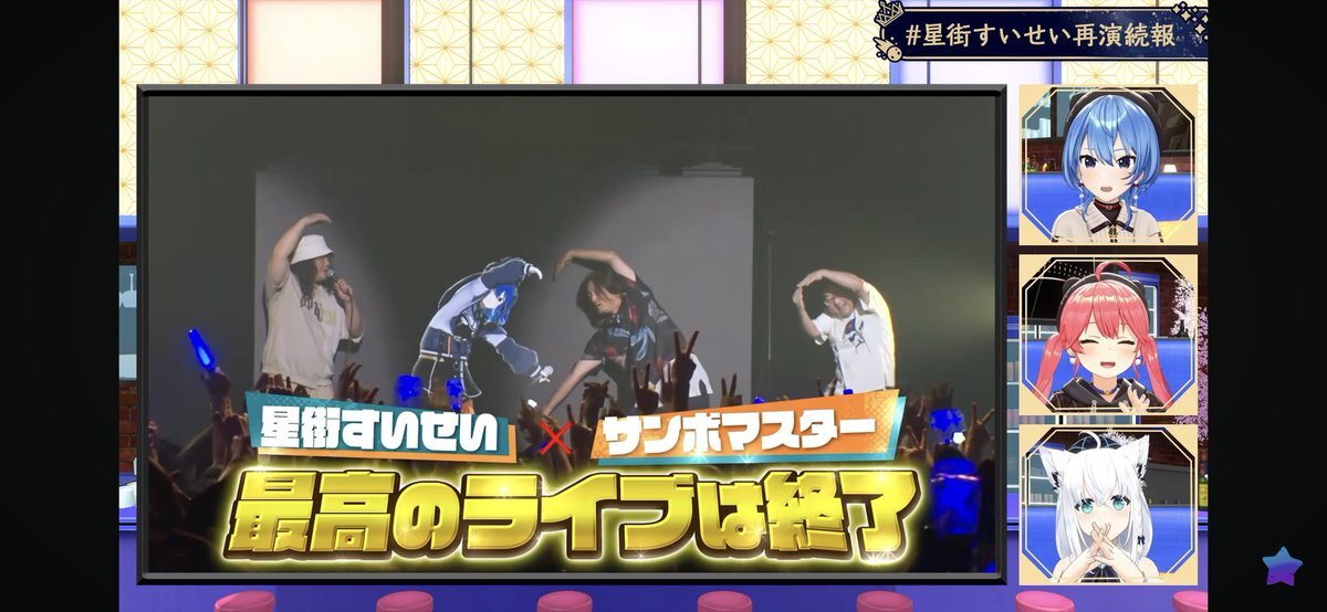 配信おつまち〜! まさかライブ映像が流れる何て思わなかった… サンボさんの対バン、キズナアイさんとの夢のライブコラボ楽しく見させてもらったよ! そして再演がついに決まった…!必ず行くよ!!! #星街すいせい再演続報 #ほしまちすたじお pic.x.com/GEzLXcIXZl