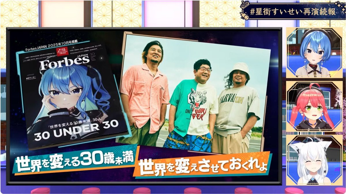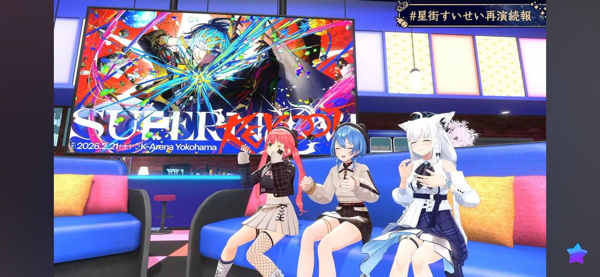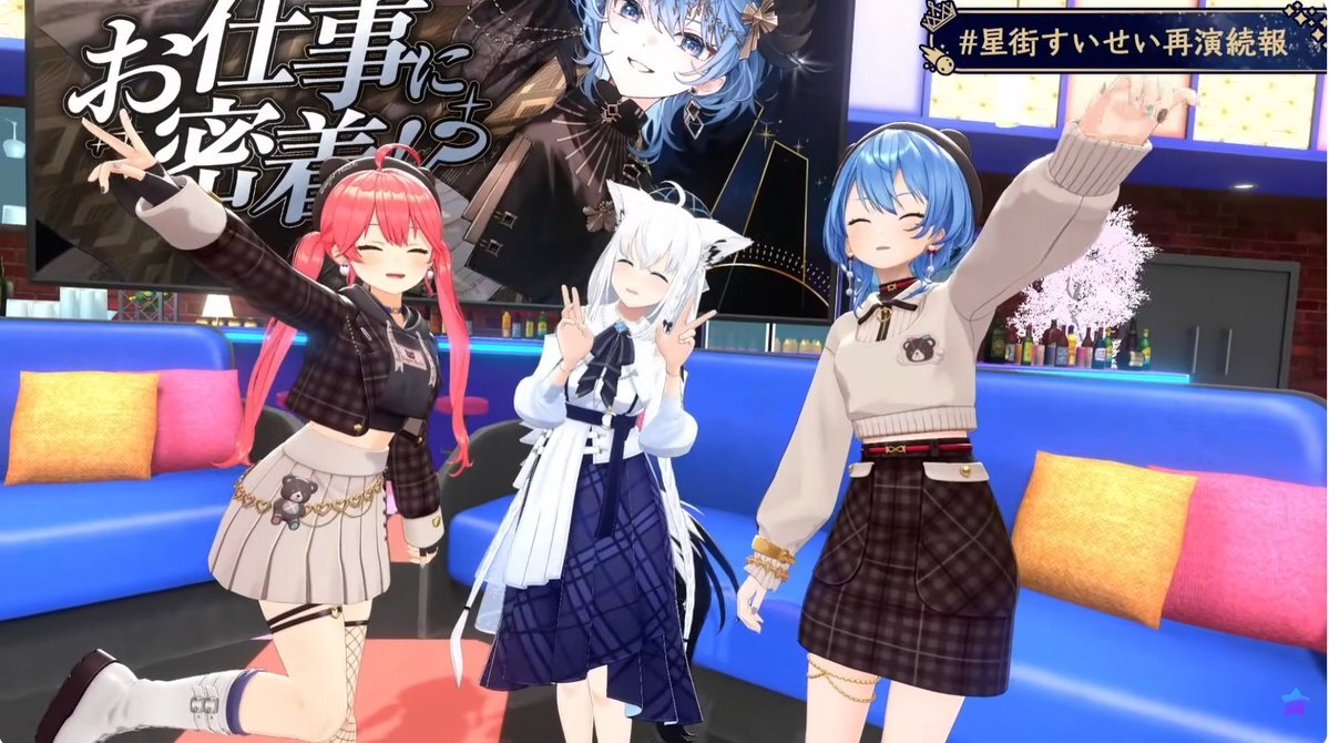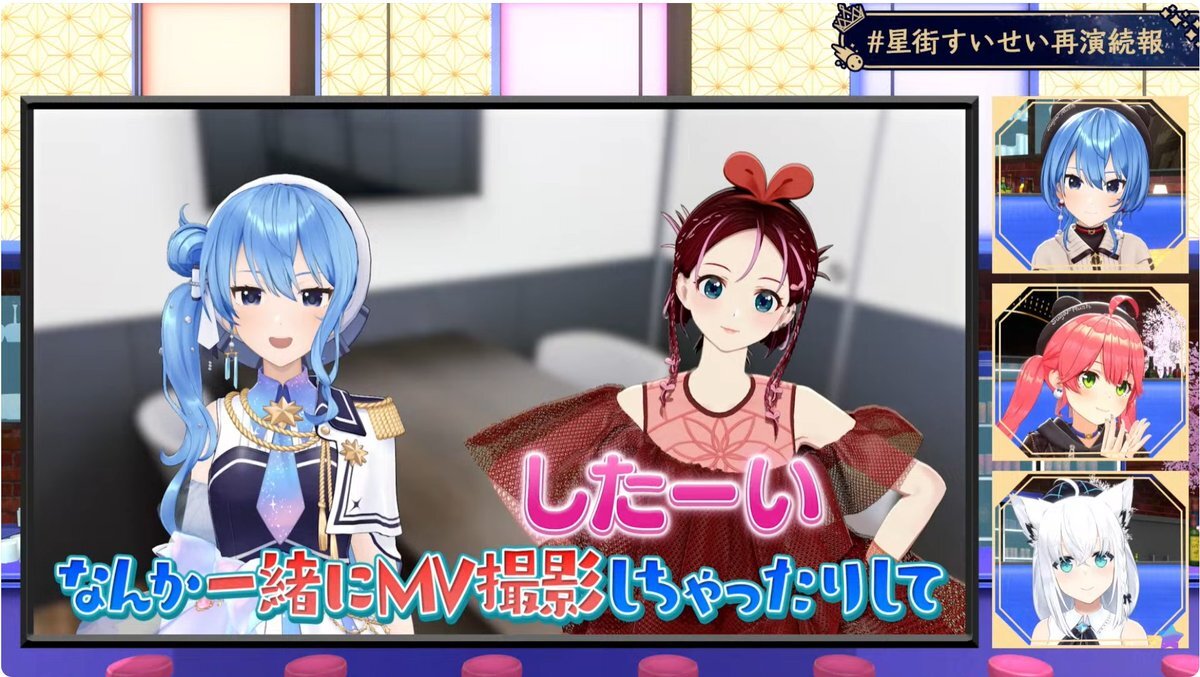アーカイブから #星街すいせい再演続報 おつまち! お仕事密着の裏側で思ってた以上にリアルな側面が見れて楽しかった! サンボにアイちゃんと、錚々たる人達と共演したすいちゃんやっぱりすごいっす! そしてライブのキービジュが最高にかっこいい! 来年の再演が楽しみだ! #ほしまちすたじお pic.x.com/DE4lo6Nnpo