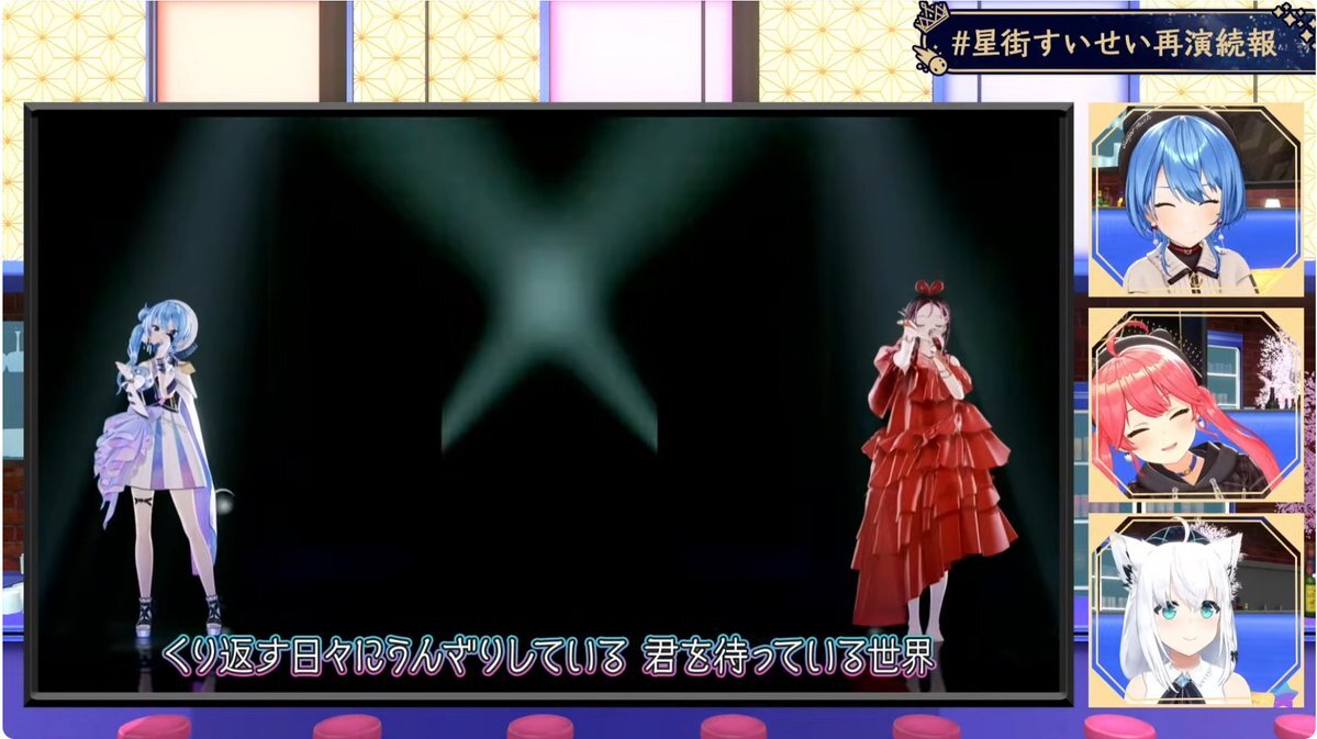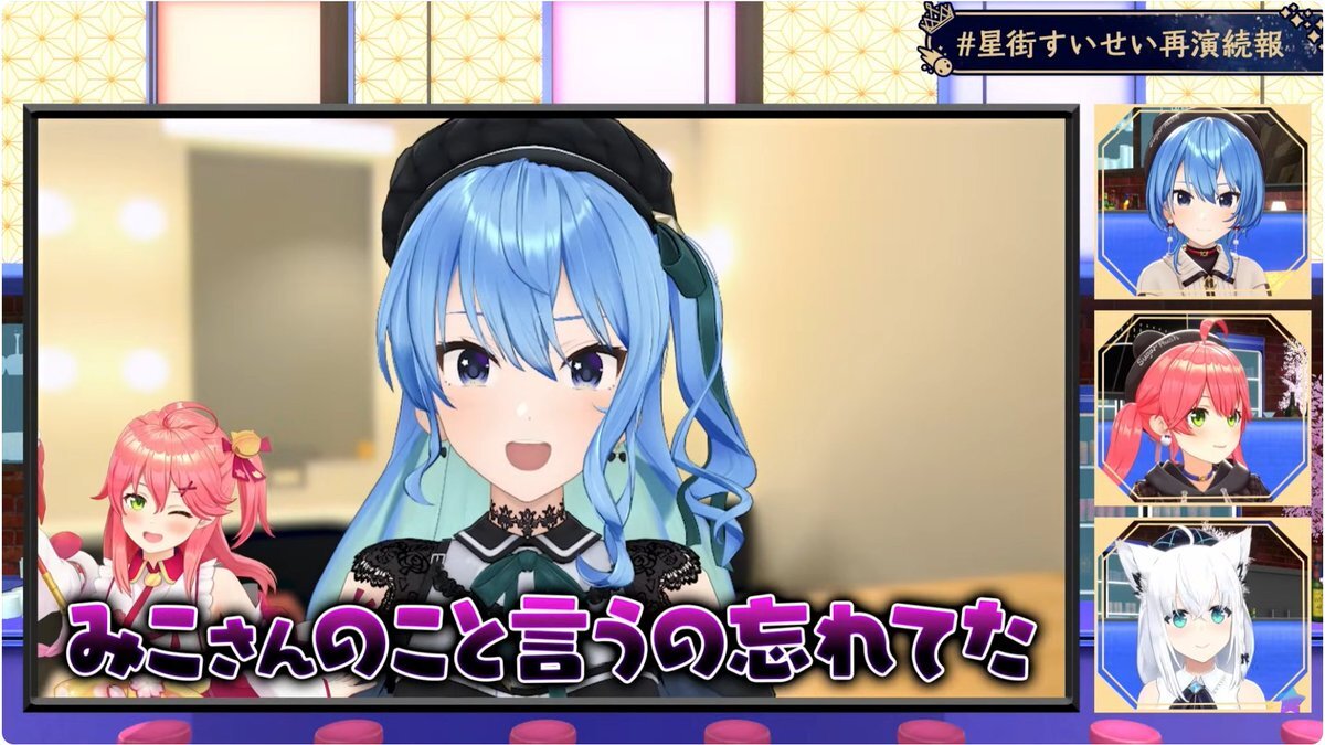 ゆっくりアーカイブ見返してたらいっぱいてぇてぇ観測できて幸せな気持ちになった みこめっとに挟まれるフブさんしゅごい みこめっと観測者に俺もなりたい…… #星街すいせい再演続報 #ほしまちすたじお pic.x.com/HH8T3xgMil