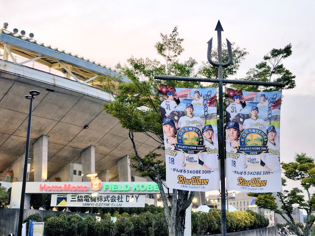 【今シーズン神戸開催試合終了】 本日の試合で、Bs1軍とファームの神戸開催試合が終了しました。 1軍:2勝3敗0分1雨 2軍:3勝2敗1分2雨 合計:5勝5敗1分3雨 青波ユニで戦い勝率5割で終了 今年も神戸で沢山お世話になりました! ありがとうございました! #ほっともっとフィールド神戸 pic.x.com/xzW8wUKZ0O