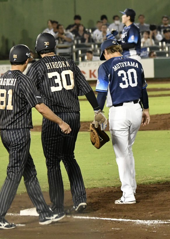 昨日の私的、ちなヤク的激エモシーン。 この2人がお互いにチームを変えて、同じ背番号で対戦してるの見ちゃったら涙腺崩壊したわ🥺 (じーんとしちゃってこれしか撮影できてない😅) 2024.9.4 #ほっともっとフィールド神戸 #廣岡大志 #元山飛優 #元ヤクルトのショートストップ pic.x.com/7kkJORszka