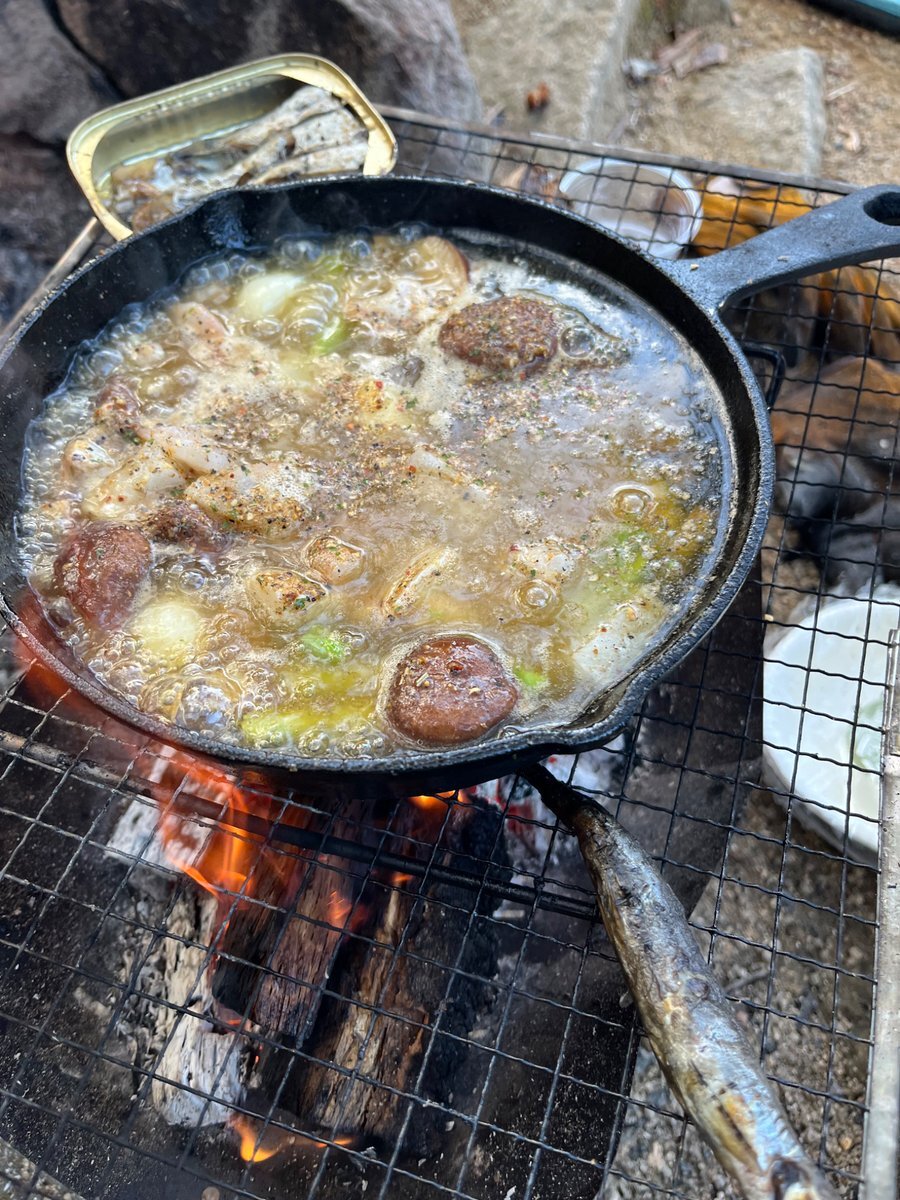 キャンプ写真第二弾w アヒージョしたり ダッチオーブンで料理したよ🍳 あやのチャンがね🤭 ゆみチャン何もしてません🍺 #ほのぼの店員 #アヒージョ好き pic.x.com/B4wy1J1cAy