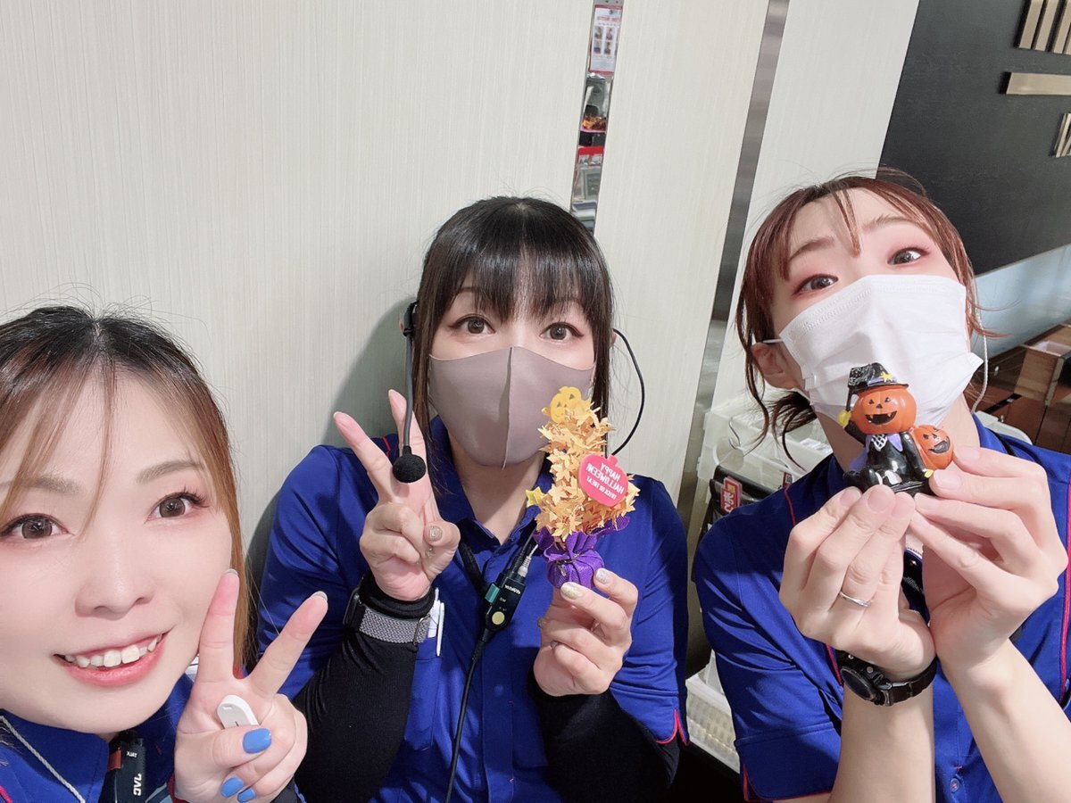 仲良しトリオだよ♪ 3人揃うの久しぶり🩷 明日はハロウィンや🎃 #ほのぼの店員 pic.x.com/OE1mdwV097