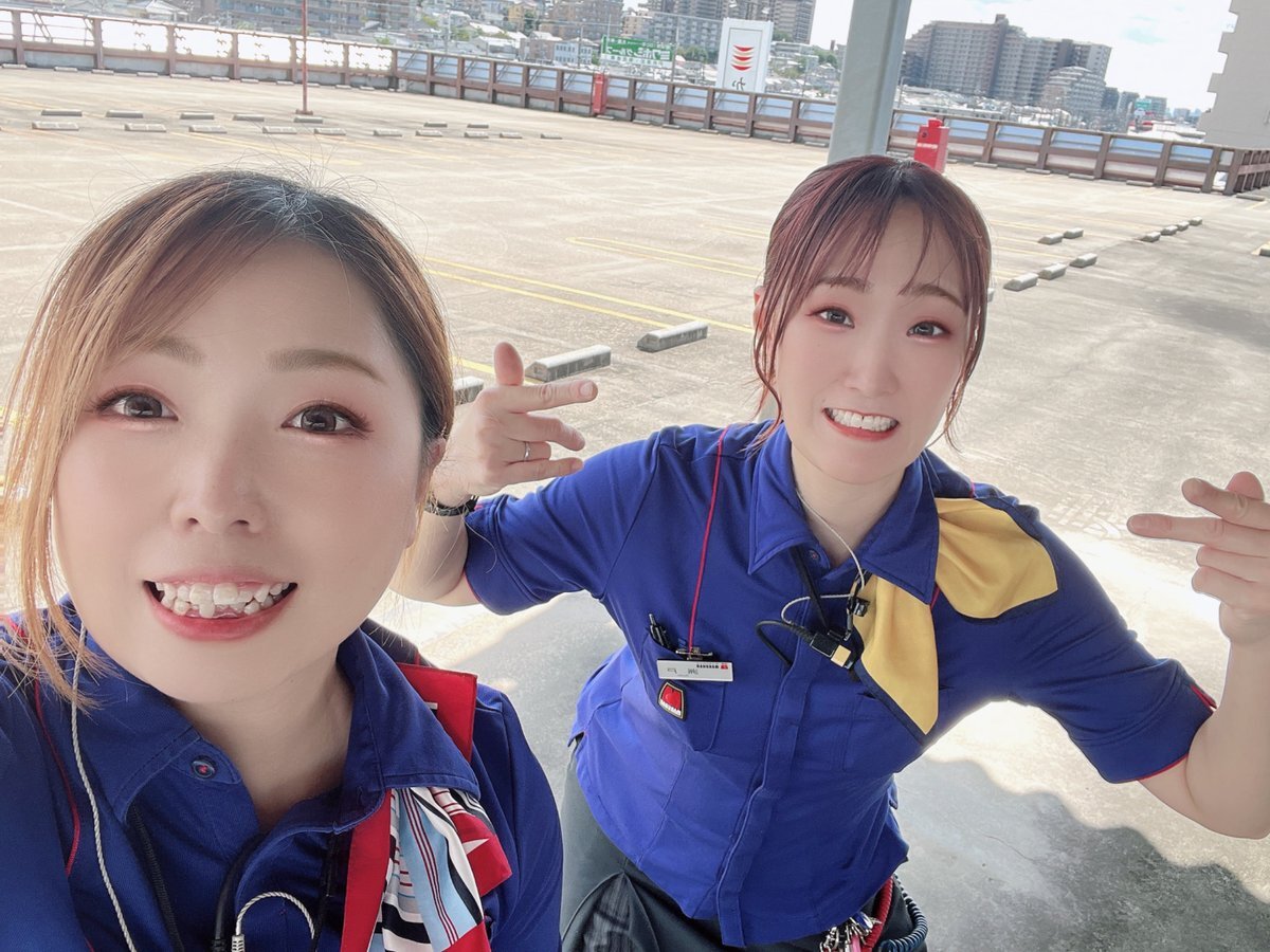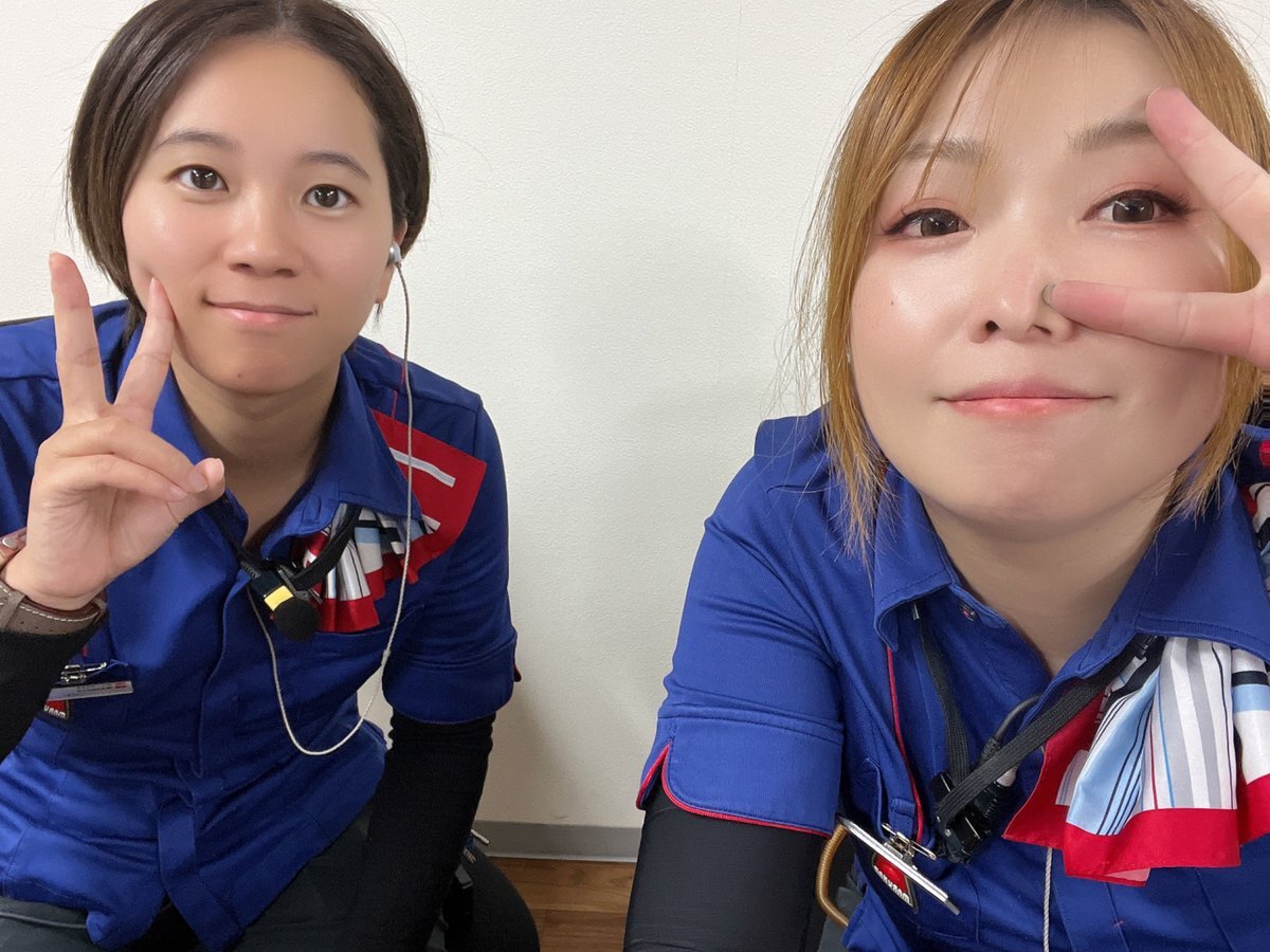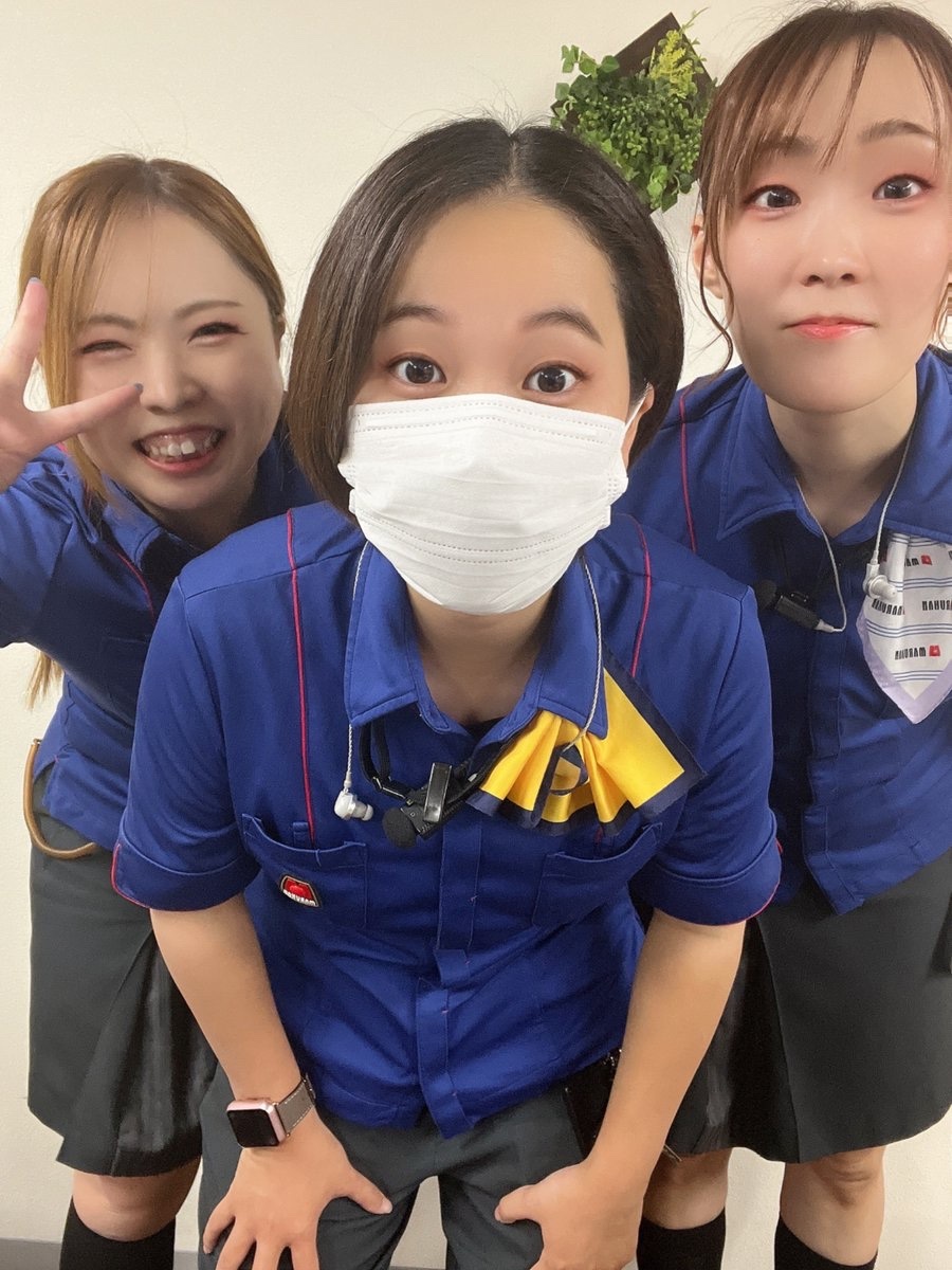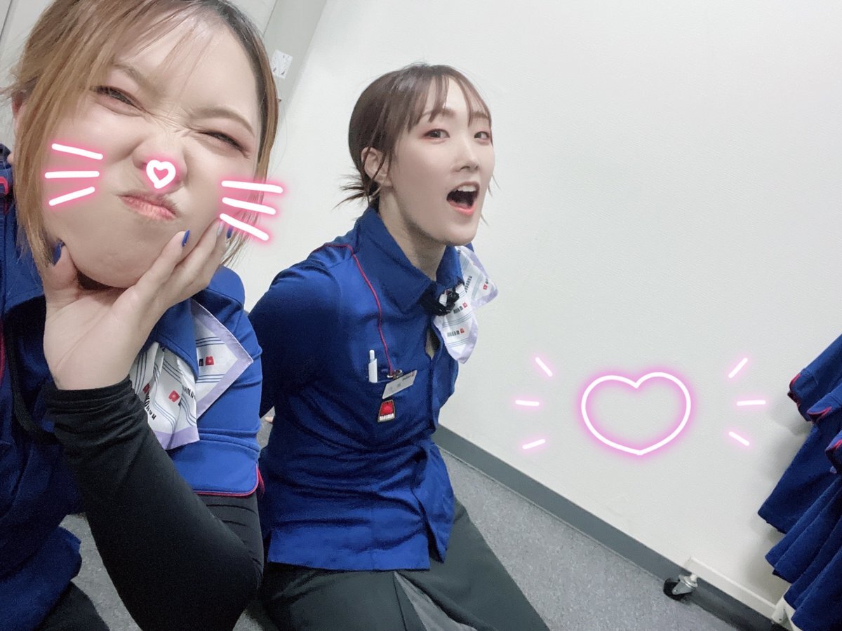 ゆみチャンとあやのチャン まゆみ先輩を挟んでみたよ🤭 今日も元気に頑張ります🥰 #ほのぼの店員 pic.x.com/bJYCx0EbVJ