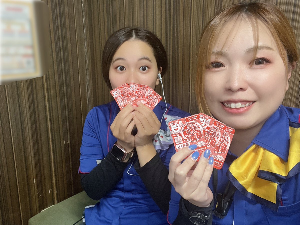 やっほー🥳 今日からファン感なのです🥳✨ 1日3回クジ配ります🥰 もうすぐ配るよー‼︎ #ほのぼの店員 #ファン感 pic.x.com/m7NlE1fECP