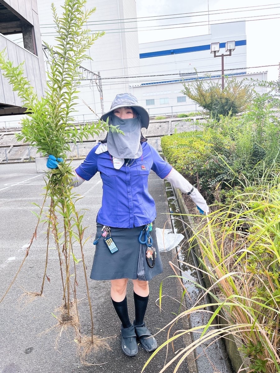 こんにちは🤗 あやのチャンと一緒に草むしり🌱 見て‼︎完全防備😂 2人で頑張りました👍 #ほのぼの店員 pic.x.com/IcsGzZpcsB