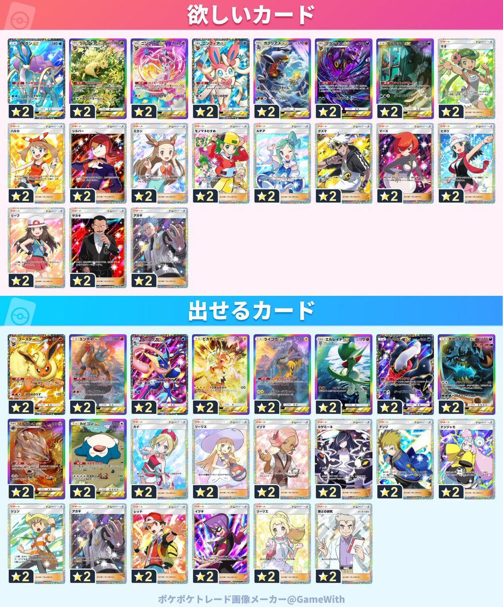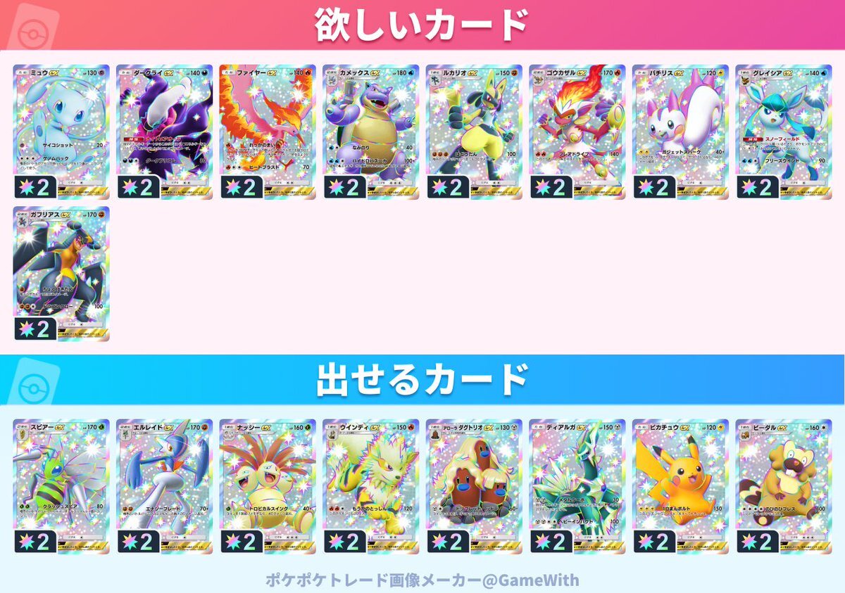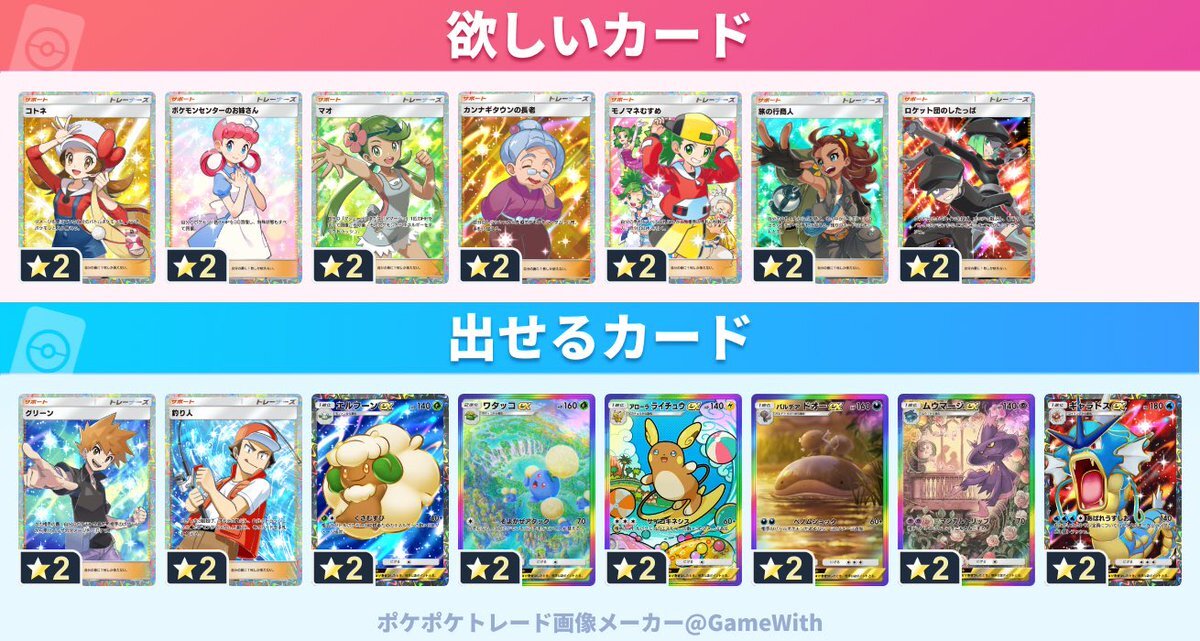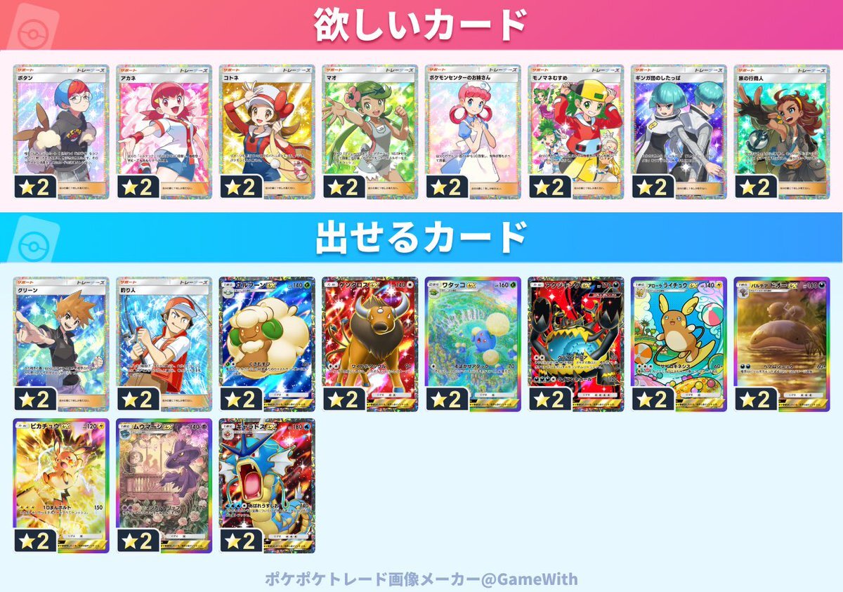 更新しました!! 女の子サポーターもうちょっとの所まできました!! トレードいけそうな方にはリプ返しますんで、どんどんお願いします! #ポケモン #ポケポケトレード #ぽけぽけ pic.x.com/WKmcmRHbf6